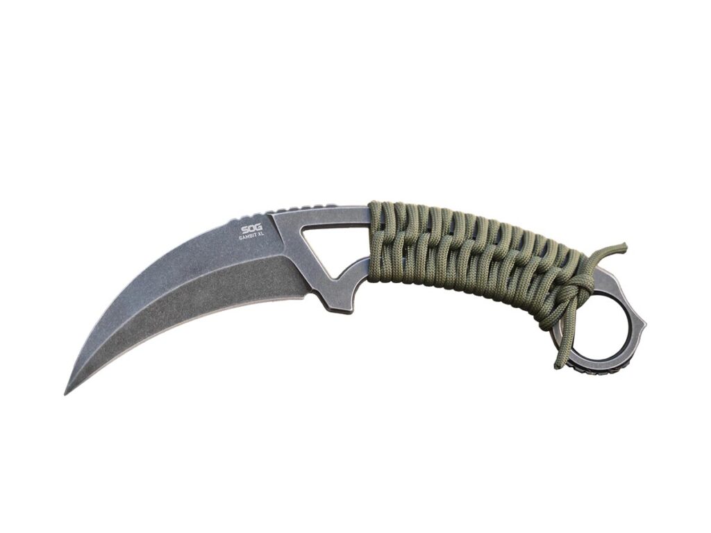 类型: 卡拉姆比特直刀刃长: 4”刃材: CRYO AUS-10A 不锈钢刃厚: 0.19”叶面处理: 黑色石洗叶片形制: 鹰嘴手柄: 绿色伞绳缠绕重量: 4.75 ozs.总长: 8.75”鞘: Kydex® w/Safe-Lock clip产地: ChinaMSRP: $139.95Company: SOG Knives