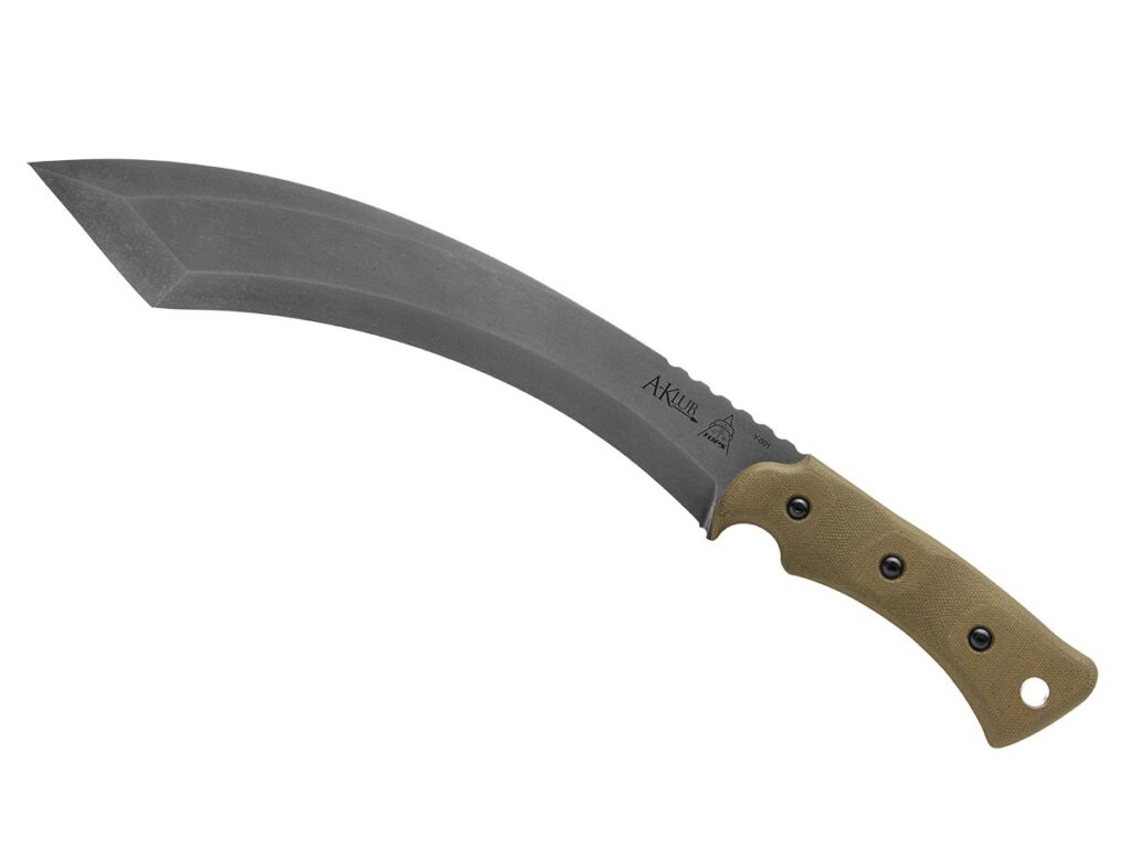 设计师: Amanda Kaye刃长: 12.38”刃材: 1095 碳钢洛氏硬度: 56-58 HRC刃厚t: 0.19”叶片处理: 酸洗手柄: 绿色帆布米卡塔重量: 23.8 ozs.总长: 17.88”鞘: Black Kydex®鞘夹: 悬挂鞘重: 33 ozs.产地: USA更多信息: A-Klub是首款由女性设计的TOPS刀具,其设计者阿曼达·凯曾是电视节目《原始生活21天》的参与者;该刀具的设计灵感源自美洲印第安人的战棍。MSRP: $409.95Company: TOPS Knives