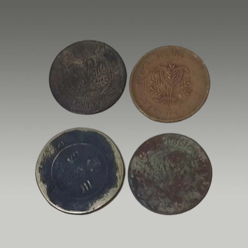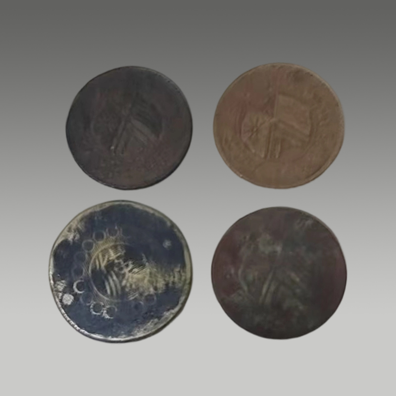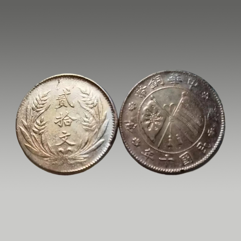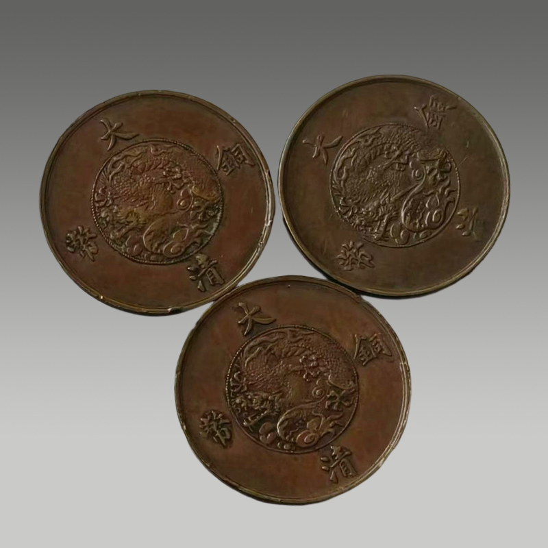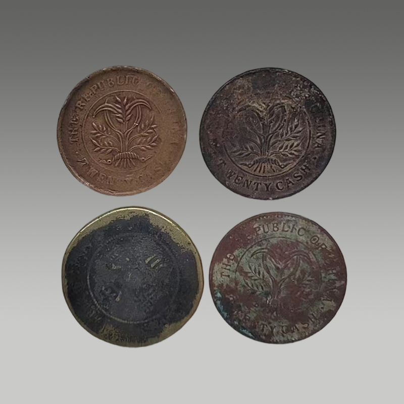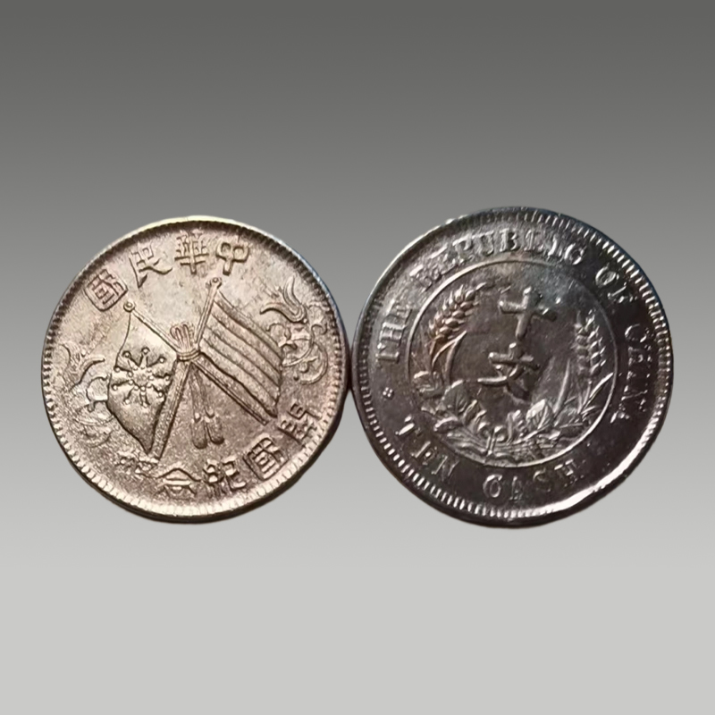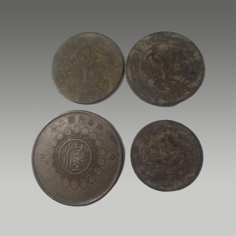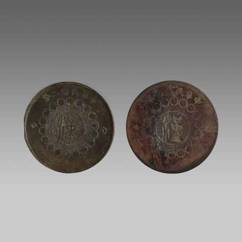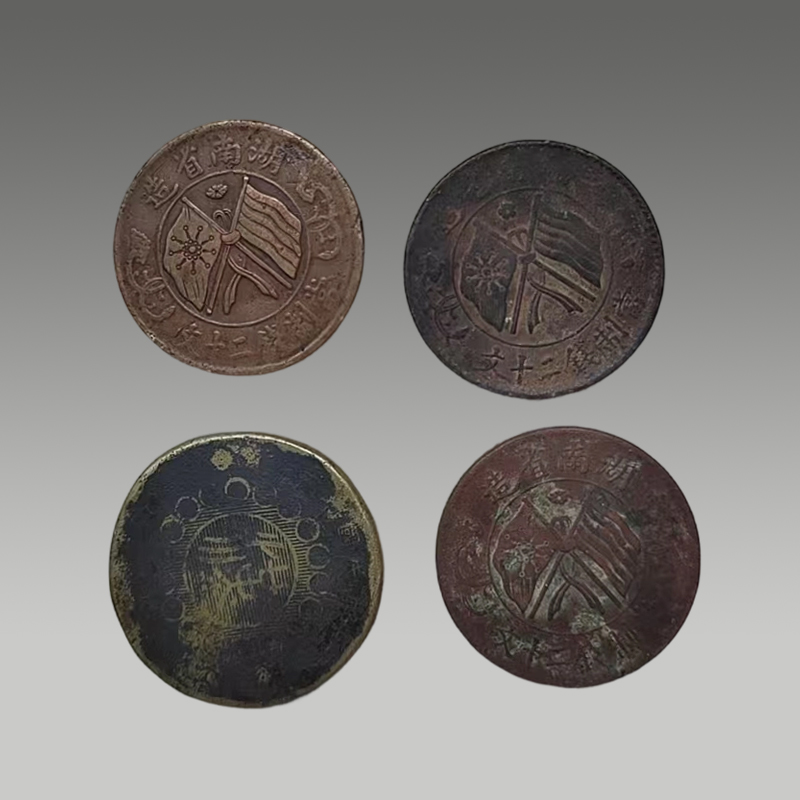 这是一组铜币,正面印有双旗,不光具备历史价值,极具收藏价值,是铜币中珍稀名誉品