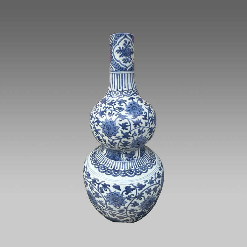 这件青花缠枝纹葫芦瓶,青花发色浓艳,纹饰繁丽流畅,器型寓意吉祥,兼具艺术美感与收藏价值