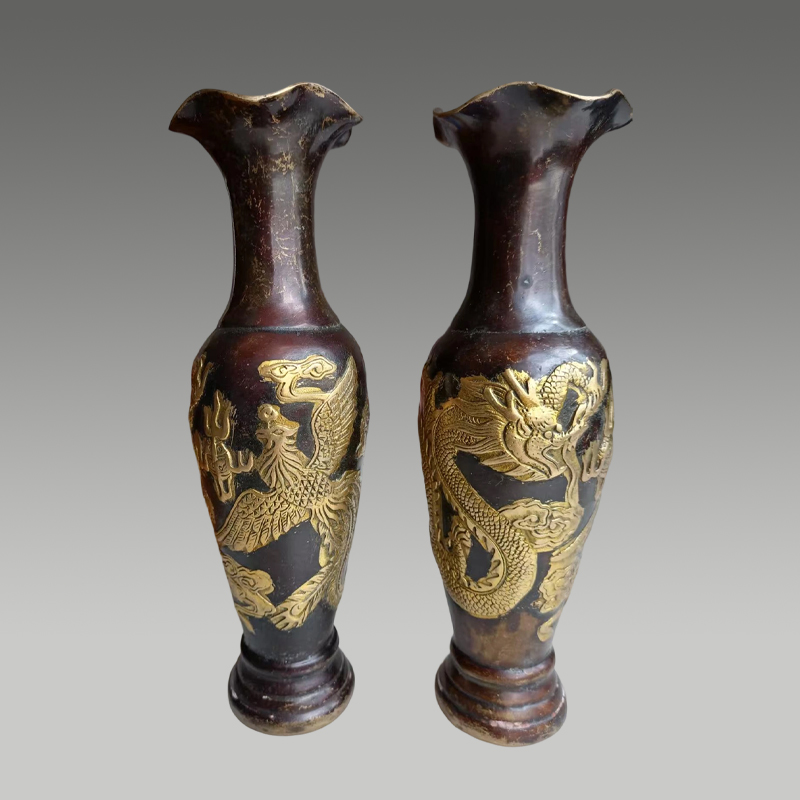 黑底金花的鎏金工艺华贵雅致,龙凤纹样栩栩如生,将“龙凤呈祥”的美满寓意凝于方寸之间