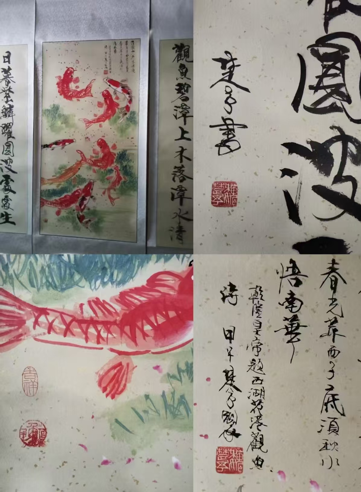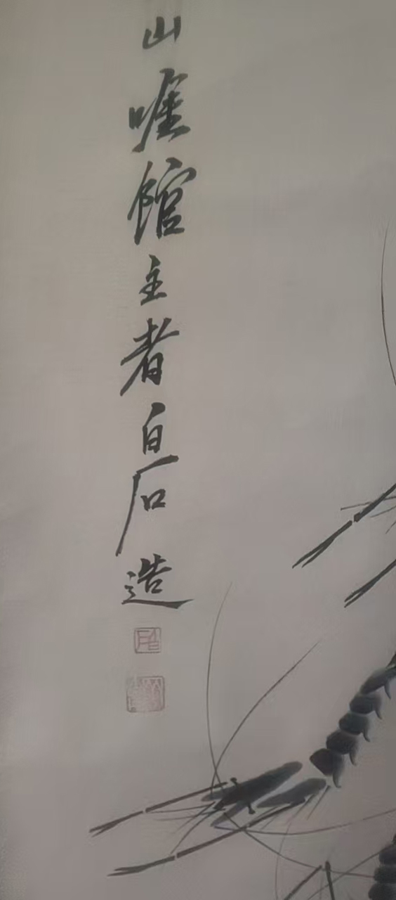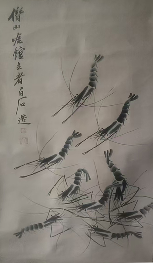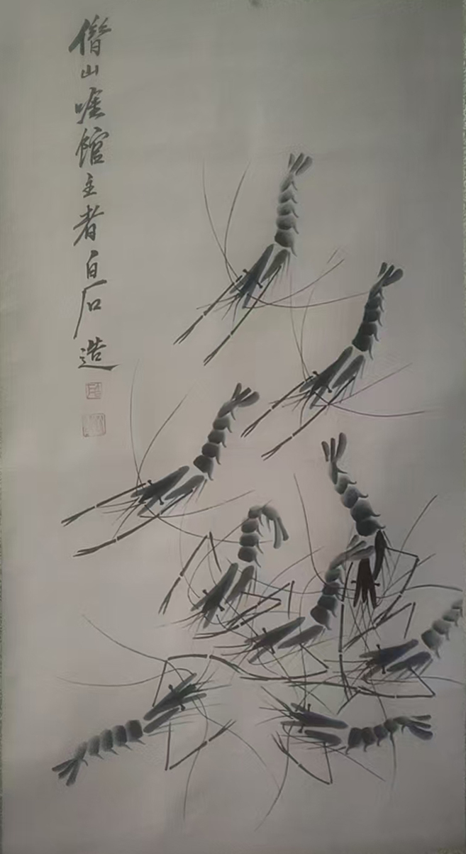 画面中,虾身墨色层次分明,纤细飘逸,仿佛在清澈的水中自在穿梭,尽显大师妙造自然的深厚功力,极具收藏价值