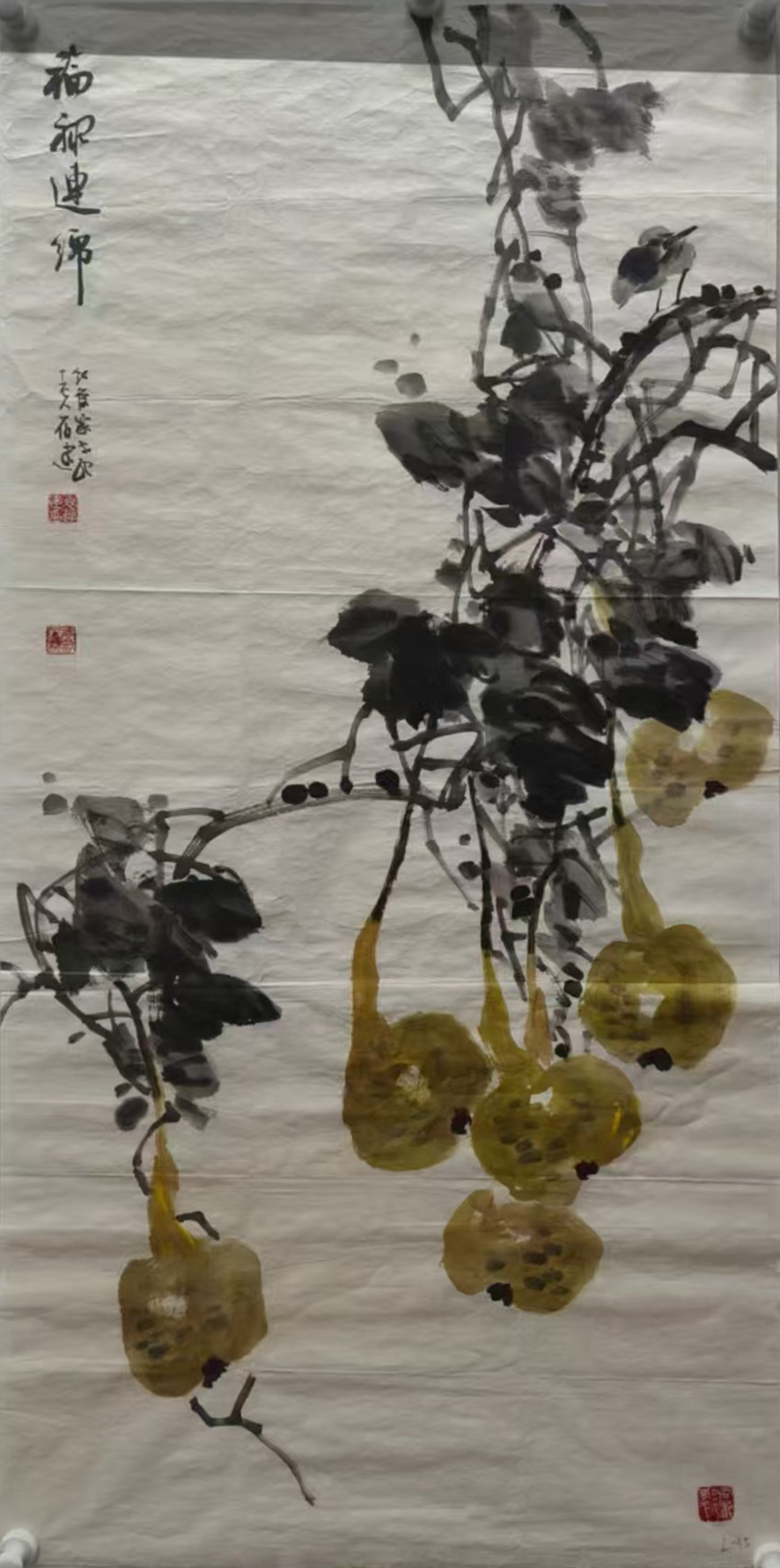 这是一幅大写意国画,以葫芦为核心题材,具有传统吉祥寓意与写意笔墨特点,极具市场价值和收藏价值