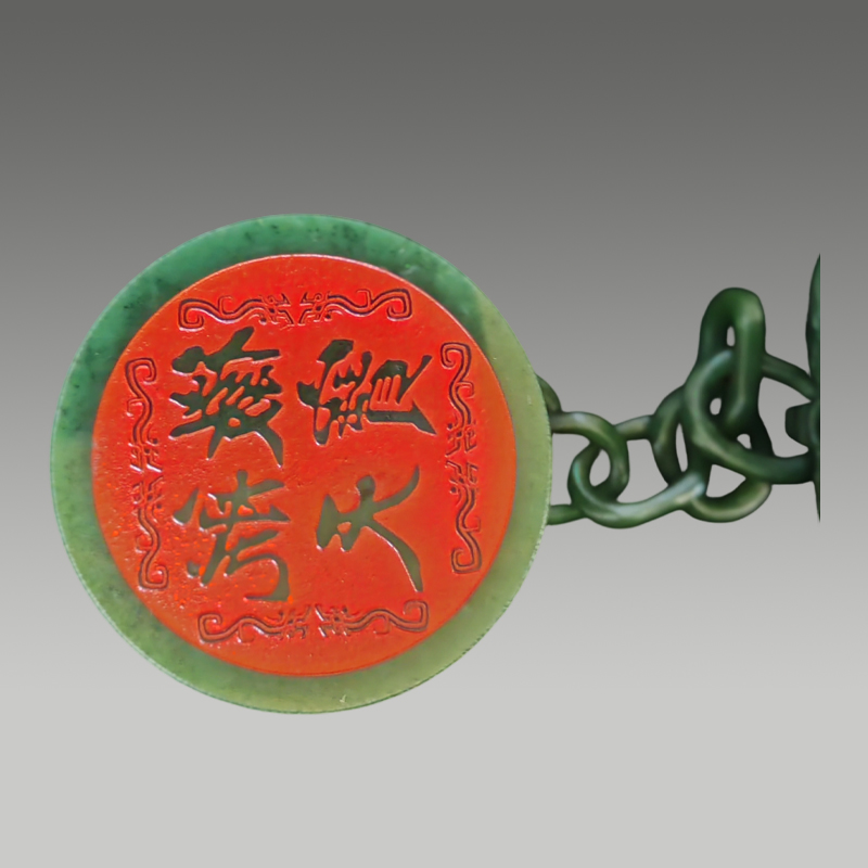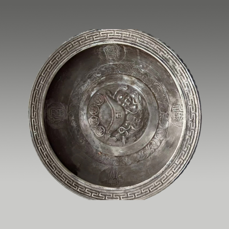 以回纹环绕“福”字,是传统吉祥纹饰,浮雕“八仙过海”人物图案,寓意吉祥,象征“各显神通、平安顺遂”