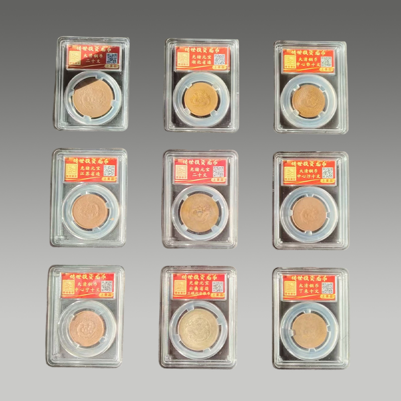 这组钱币正面威严的五爪龙纹工艺精湛,包浆温润自然,是极具纪念意义的钱币,兼具收藏价值