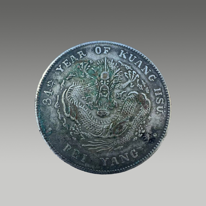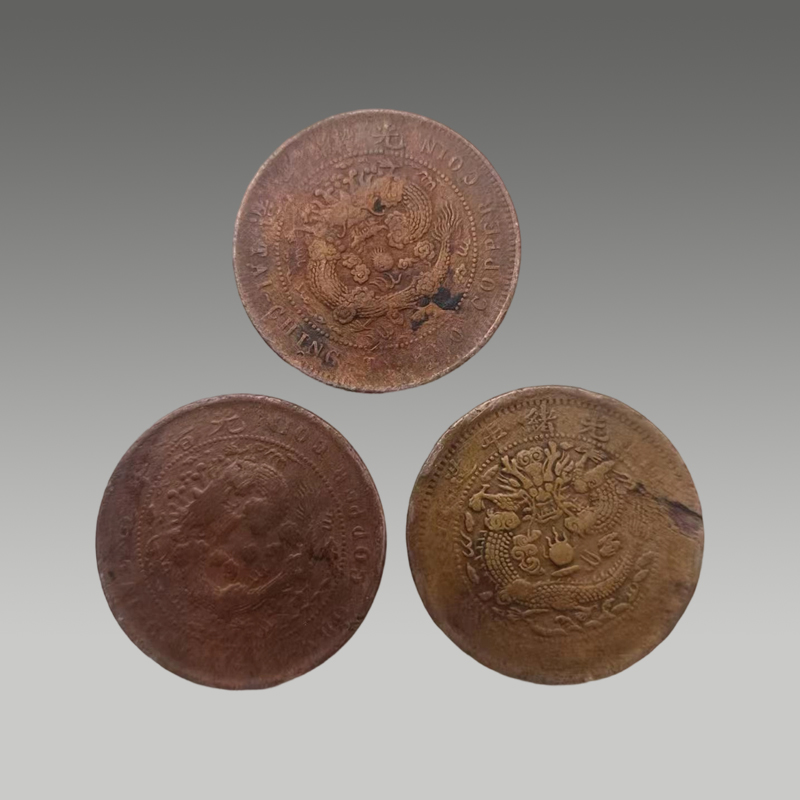 我国货币从传统方孔钱向近代机制币转型的关键,因年代久远,表面常呈现红褐色包浆或局部绿锈