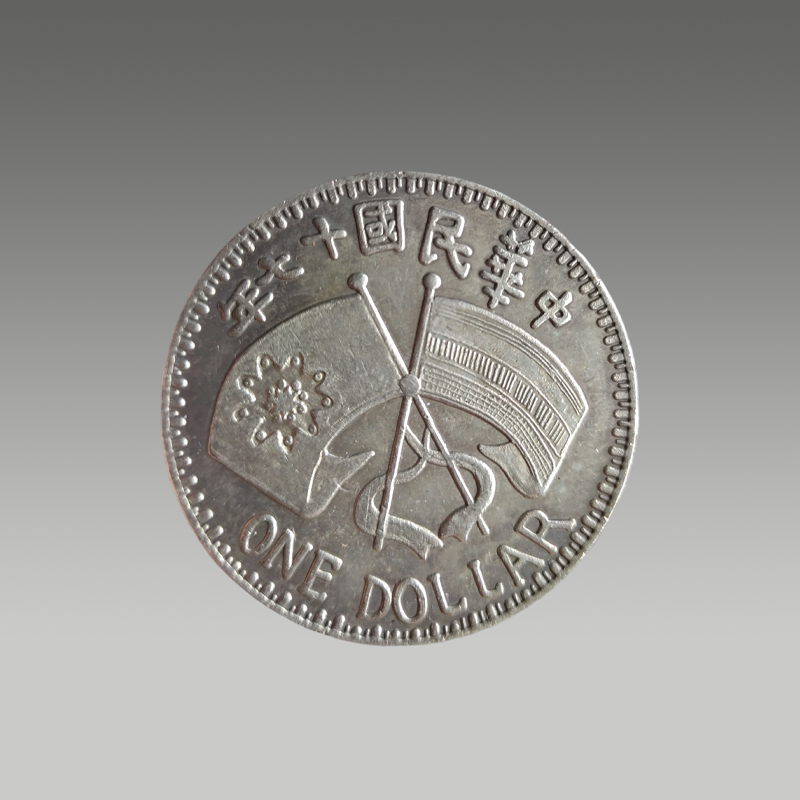 币面中心为交叉的旗帜图案,稀有省份铸造的版本存世量少,具有收藏价值