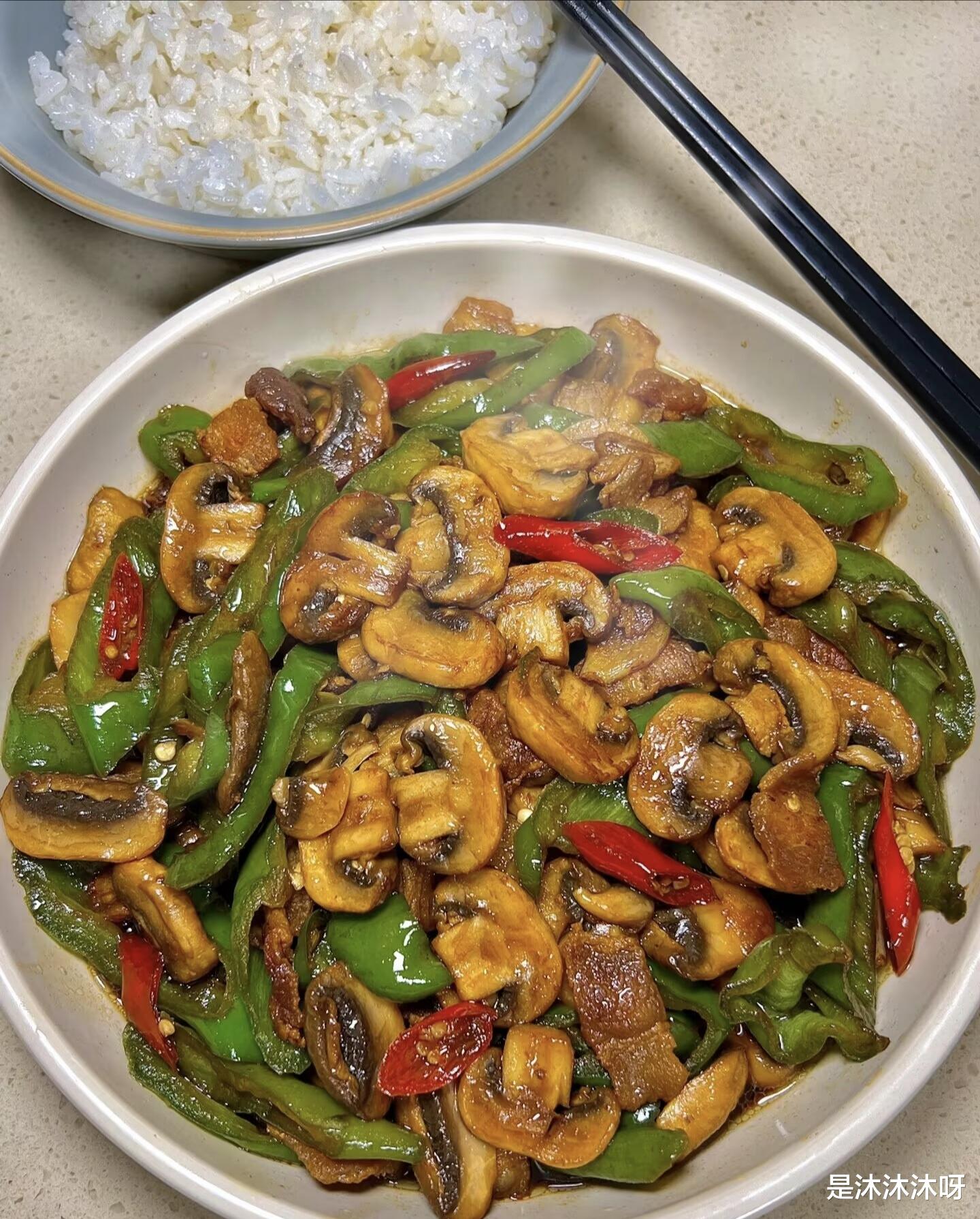 青椒炒口蘑!别看它名字平平无奇,长相也低调,但这道菜可是有着“素菜里的肉滋味”之美誉。