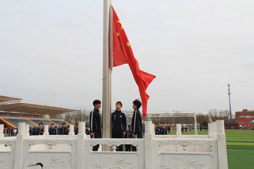 晨光之中,五星红旗冉冉升起,初中部的护旗手们以挺拔身姿彰显少年担当。