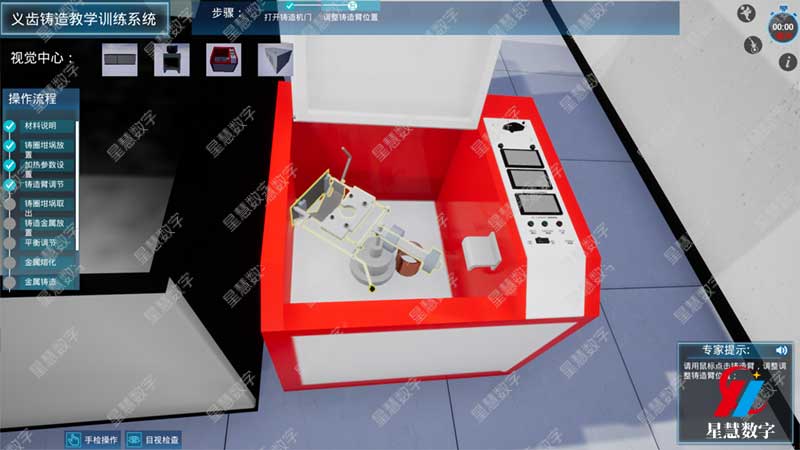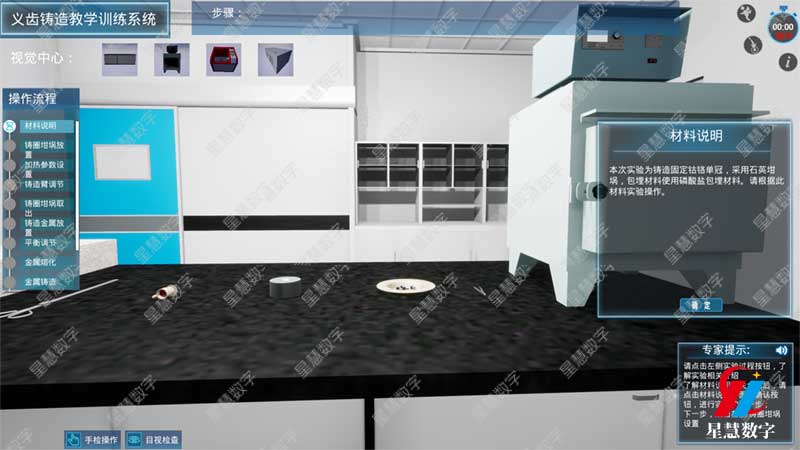 作为该平台的组成部分,义齿铸造教学训练系统精准地瞄准了教学痛点。它并非要取代教师的指导,而是为学生提供了一个无风险的预演舞台。在进入真实的、充满高温金属和复杂设备的铸造室之前,学生可以在虚拟环境中,从容地走完从模型处理到最终抛光的完整流程。