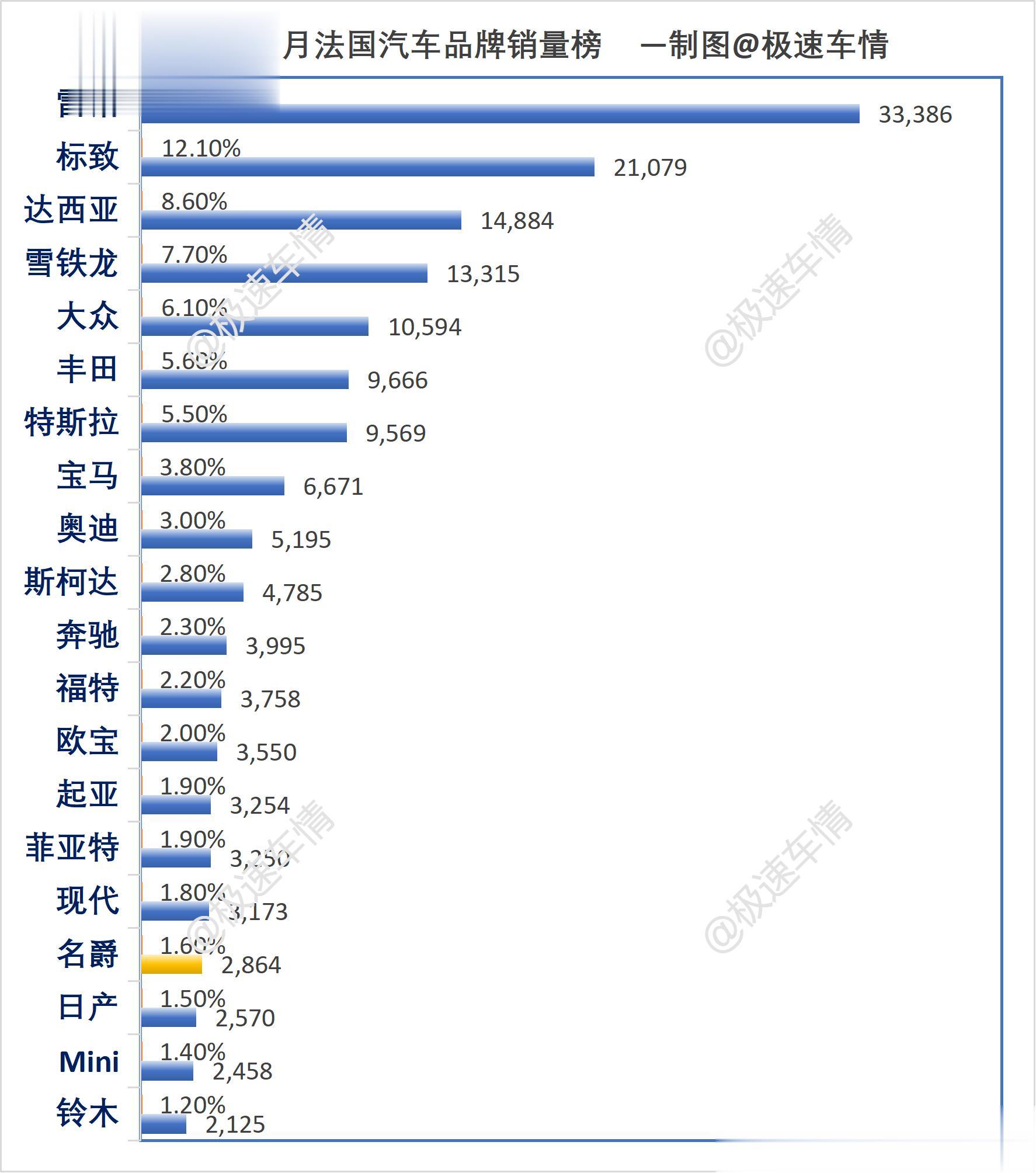 大家好,这里是极速车情。今天为大家带来法国汽车市场2026年3月的销量数据报告。