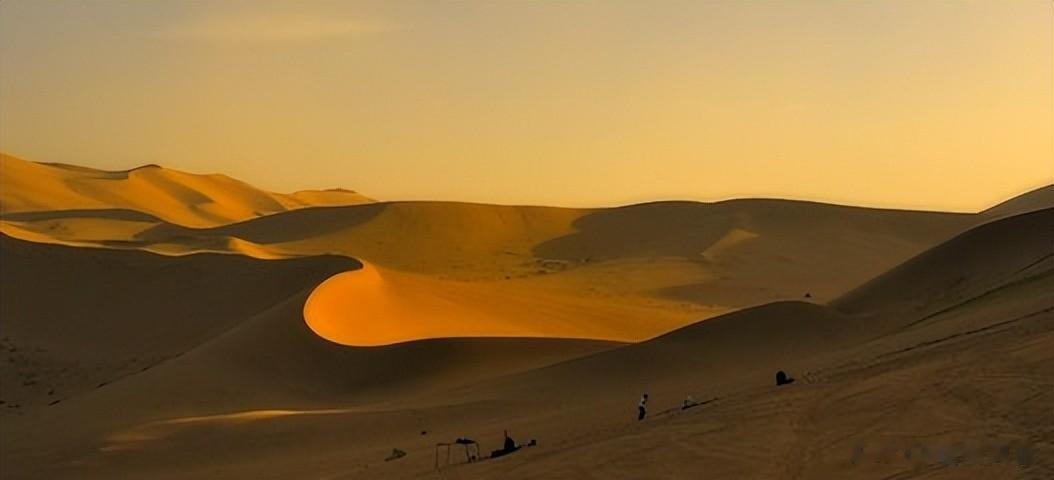 我站在沙丘上,看着那些骆驼在沙地上踩出一串串脚印。牵骆驼的大哥说,这些脚印,一场风就没了。
