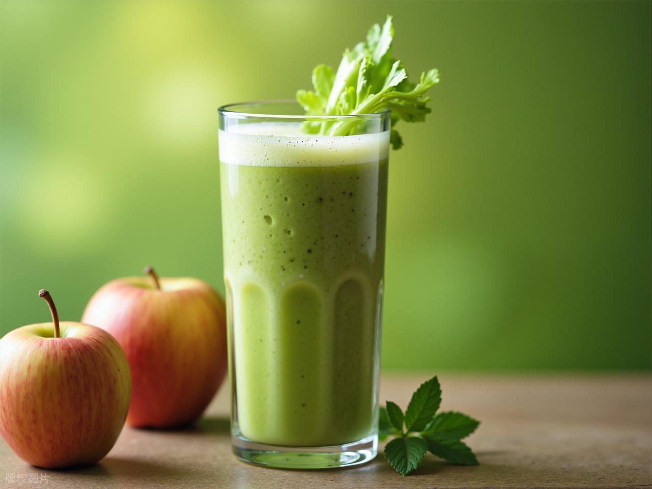 3、清新芹菜汁:取新鲜芹菜茎叶约200克,洗净后与一小片生姜(平衡寒性)、一个苹果(增加香甜口感)一同榨汁,清晨饮用,唤醒身心。