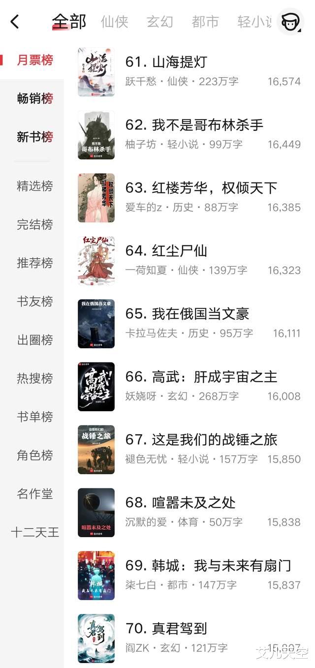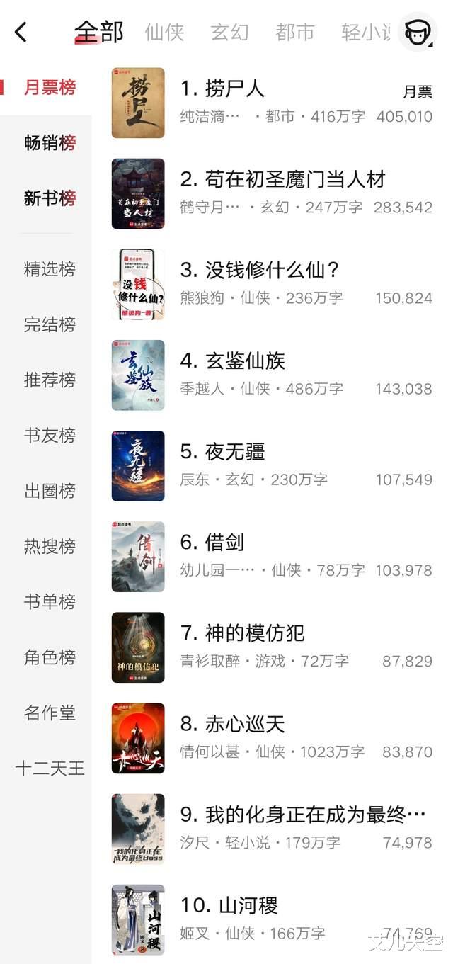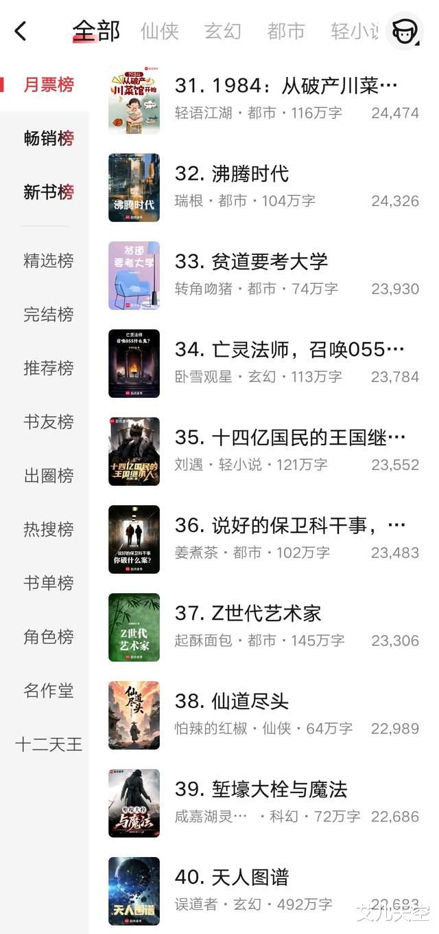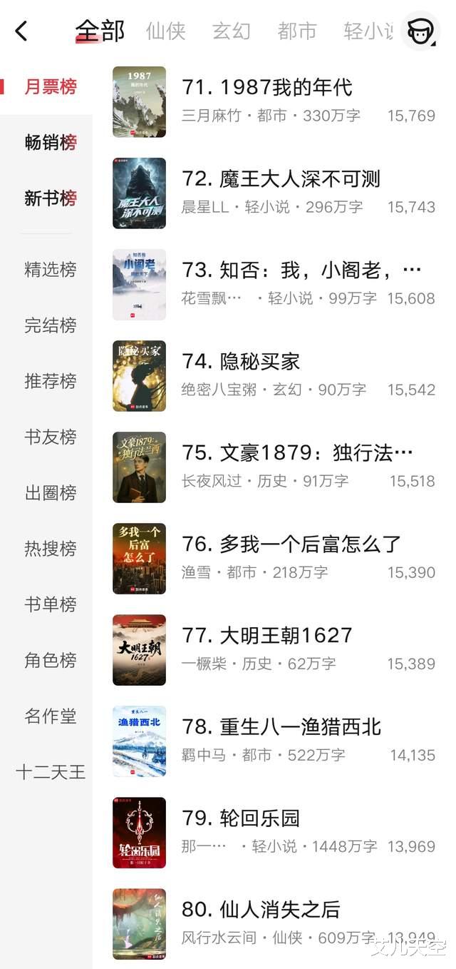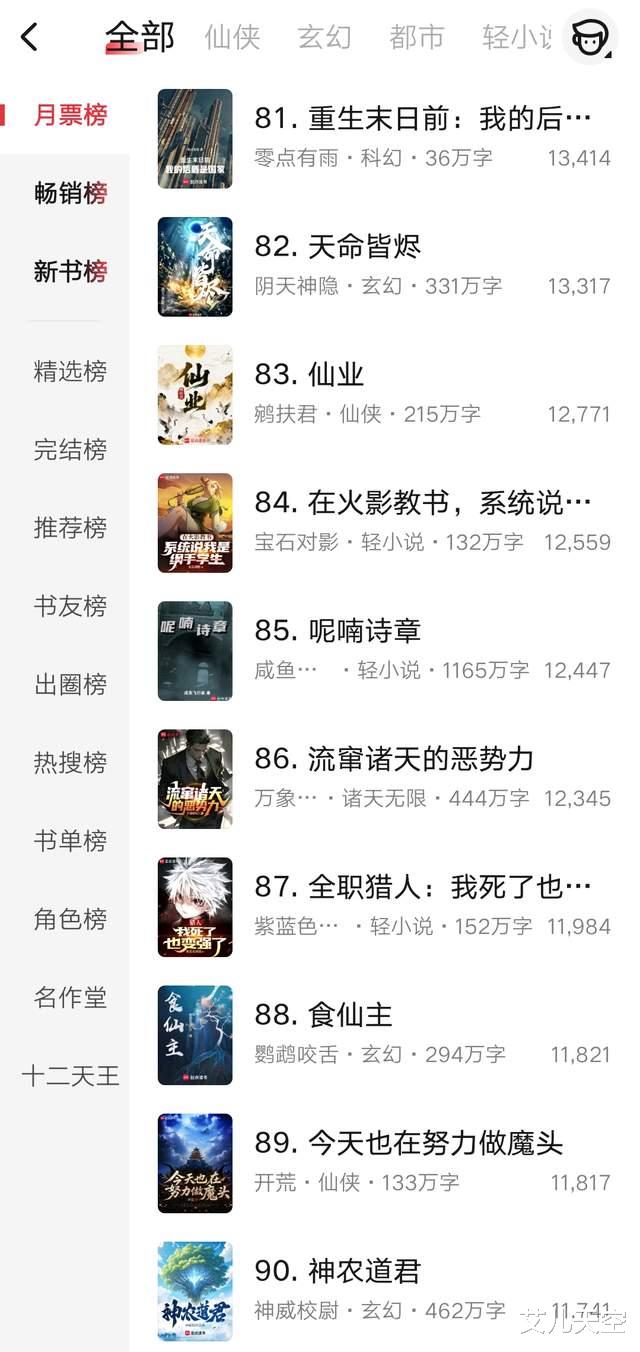 以上就是这周起点一些作品的月票榜排名情况,简单记录一下,我们下期见。