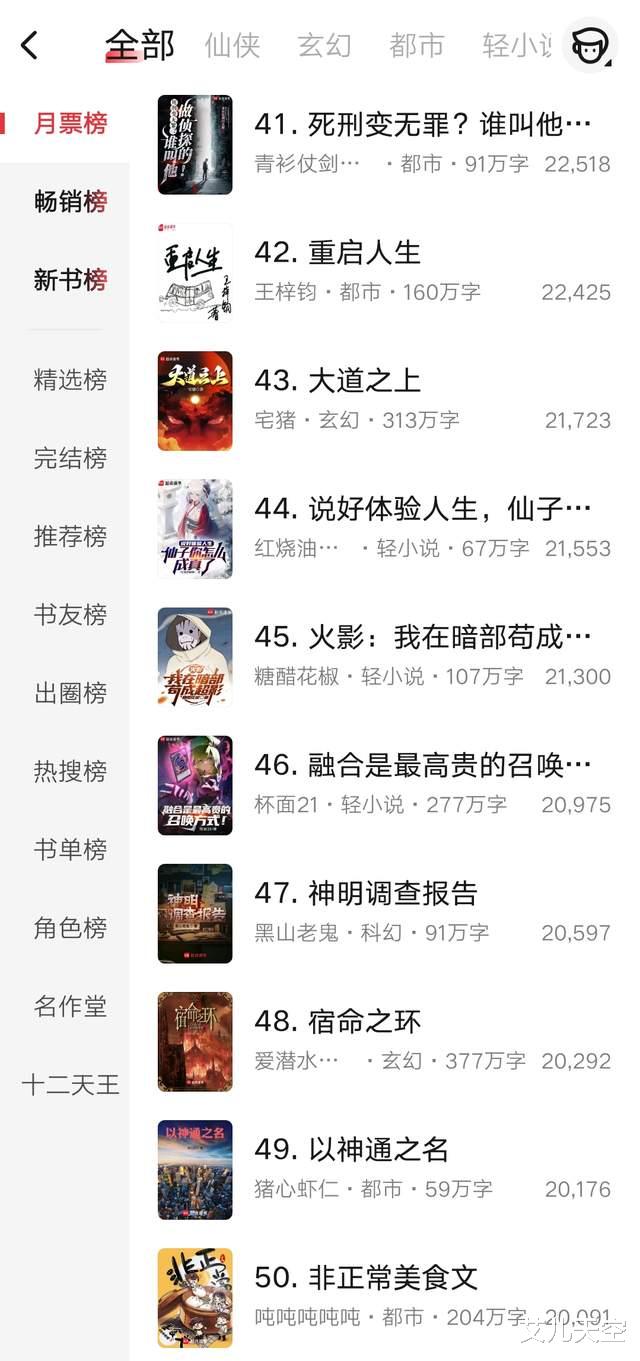 青衫仗剑行天涯的《死刑变无罪?谁叫他做侦探的!》、黑山老鬼的《神明调查报告》则被挤出前四十了。