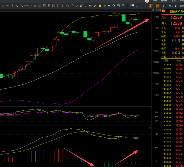 技术面:日线突破 12000 元关键压力,5/10/20 日均线多头排列,MACD 金叉且红柱增长,RSI 升至 60 (中性偏强),短期多头趋势确立但需警惕回调风险