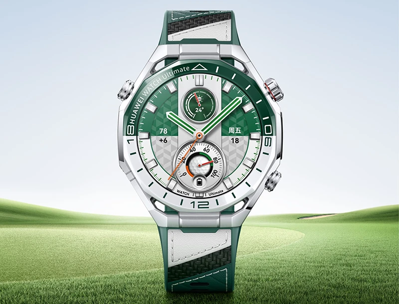 华为WATCH Ultimate 2 旷野绿作为本次发布的旗舰产品,以其高端定位和丰富功能吸引了广泛关注。该款手表定价7999元,将于4月10日正式开售。WATCH Ultimate 2采用升级款非晶锆合金表体,搭配纳米微晶陶瓷表圈与蓝宝石玻璃表镜,不仅坚固耐用,更彰显出奢华质感。旷野绿配色版本配备绿白双色素皮复合表带,时尚而不失稳重。