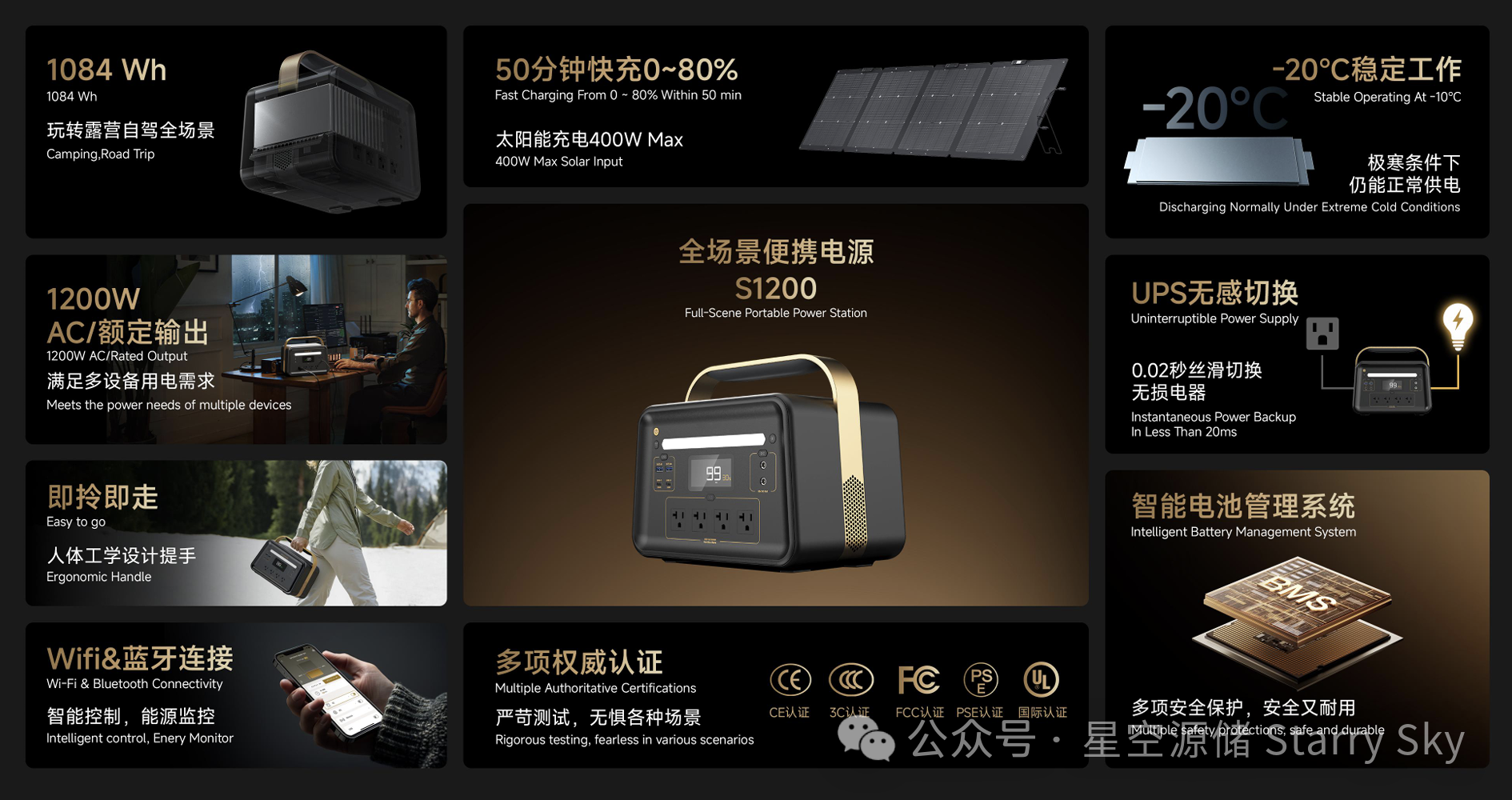 在S1200便携储能设备上,这项技术的价值得到了充分体现。经过严格的针刺、挤压测试,电池包在遭受物理损伤后依然保持完好,未出现任何明火或烟雾。这对于经常面临复杂户外环境的用户而言,意味着前所未有的安全保障。