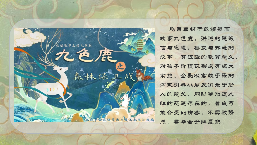 在这里,孩子们将被引领进入一个神奇的童话世界,与勇敢的九色鹿和它的小伙伴展开精彩的冒险之旅。