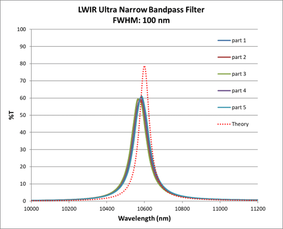 图 5:10.6 微米长波红外(LWIR)超窄带通滤光片