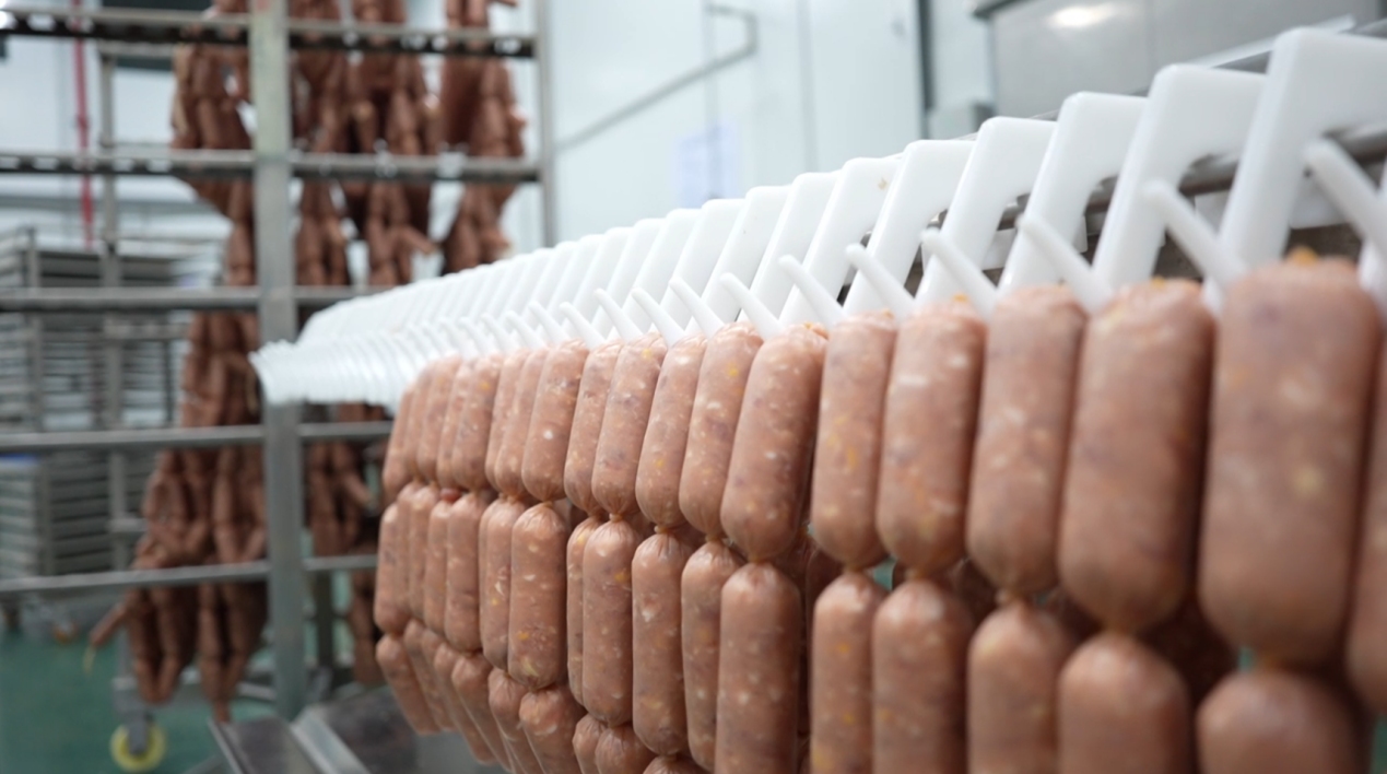 视线拉远,30公里外的屠宰厂内,智能机械精准分割猪肉各个部位,排酸车间里,在12小时精准控温下,实现肉质优化,“屠宰厂那边处理好的鲜肉,直接就能送到食品厂,不需要反复冷冻再解冻,最大程度保留了猪肉的鲜度与营养。”扬翔食品总经理李军指出。除此之外,扬翔食品用了哪些实实在在的行动,践行“只用新鲜好猪肉”的理念,让肉质紧实的烤肠在消费者面前变“透明”?