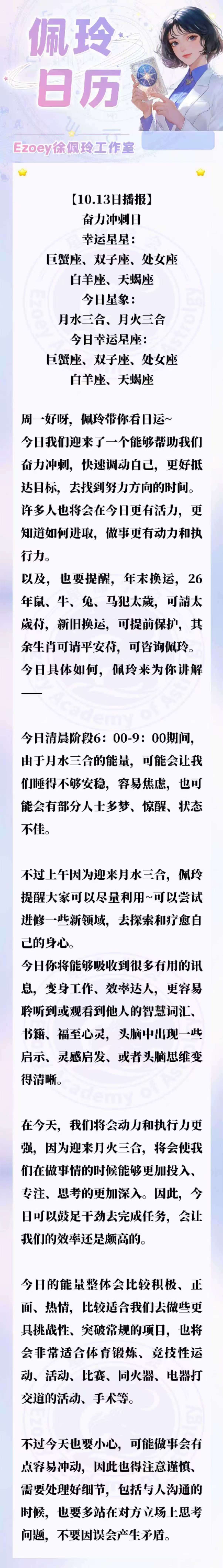 不过上午因为迎来月水三合,佩玲提醒大家可以尽量利用~可以尝试进修一些新领域,去探索和疗愈自己的身心。