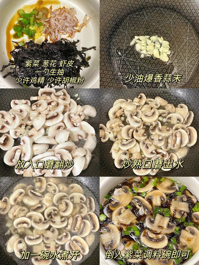 主要食材:紫菜、口蘑、鸡蛋、葱花