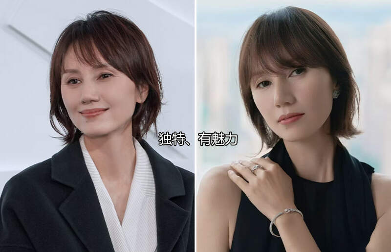 袁泉的短发非常巧妙,她的短发长度通常保持在下颌与锁骨之间,既修饰脸型又不拖沓,发色通常是黑色和深棕,显得自然。她的短发就巧在有刘海,因为袁泉的眼睛大而深邃,刘海可以让别人第一眼就注意到她美丽的眉眼。