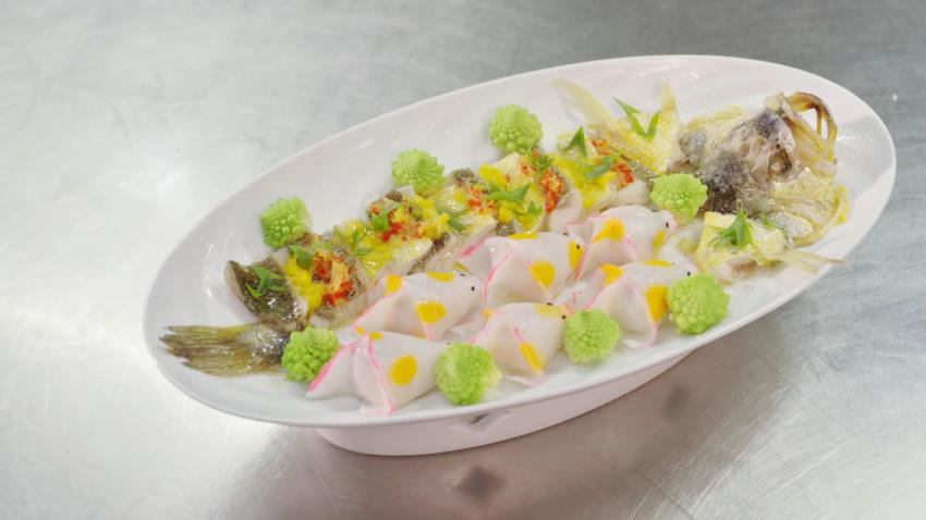 双喜鱼饺蒸大黄鱼,图源:红厨网摄