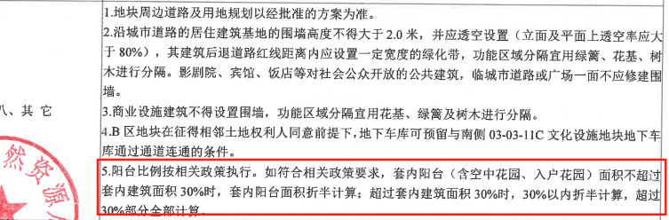 |来源:佛山市公共资源交易中心与此同时,该地块也有打造超新规产品的条件。出让文件提到如符合相关政策要求,套内阳台(含空中花园、入户花园)面积不超过套内建筑面积30%时,套内阳台面积折半计算;超过套内建筑面积30%时,30%以内折半计算,超过30%部分全部计算。