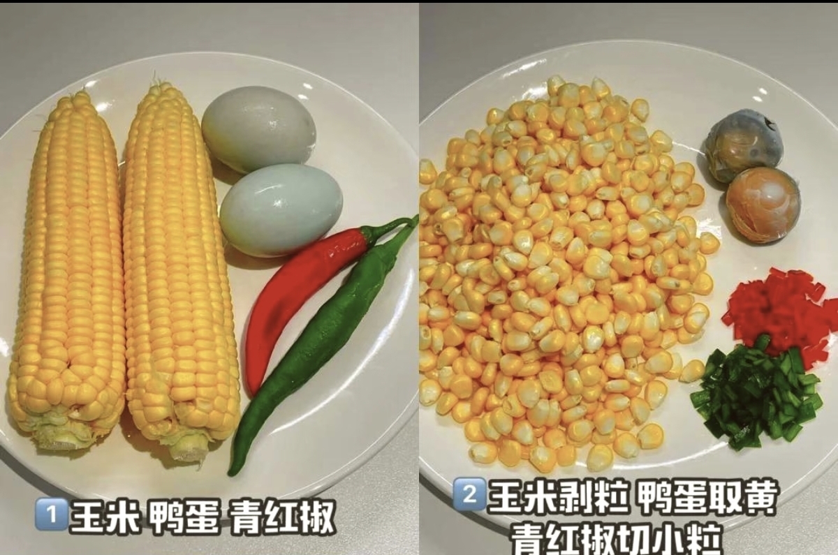 准备这道菜的食材并不复杂,两根甜玉米、两个咸鸭蛋、一个青红椒,再备上一个鸡蛋和适量生粉,就能开启这场美味的旅程。先把玉米一根根剥成饱满的玉米粒,看着金黄的颗粒滚落碗中,心里也跟着变得柔软起来;咸鸭蛋只取蛋黄,青红椒切成细碎的小丁,红绿相间的色彩,光是看着就已经让人食欲大开。