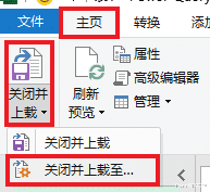 7. 选择“主页”-->“关闭并上载”-->“关闭并上载至”