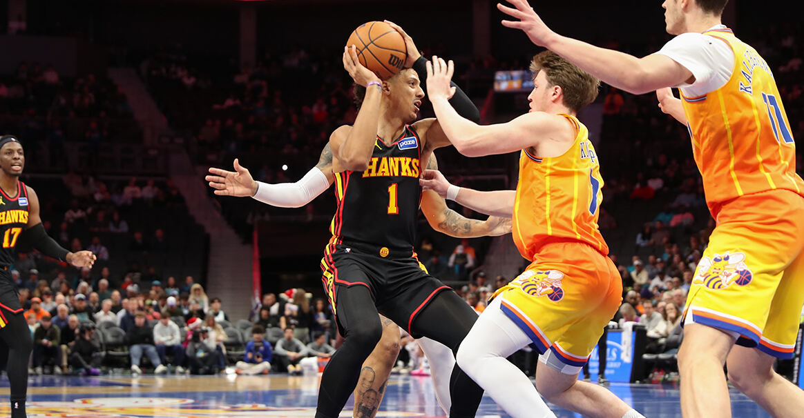 杰伦·约翰逊今天非常给力,在自己的24岁生日夜打出生涯最佳表现,出场39分钟,投篮27中16,三分球9中4,罚球7中7,空砍43分11篮板9助攻1抢断1盖帽的豪华准三双数据,得分创个人生涯新高,这也是杰伦本赛季第二次40+。值得一提的是,杰伦之前已经连续4场拿到三双,可惜今天距离三双差一次助攻,因此这一纪录也中断了。
