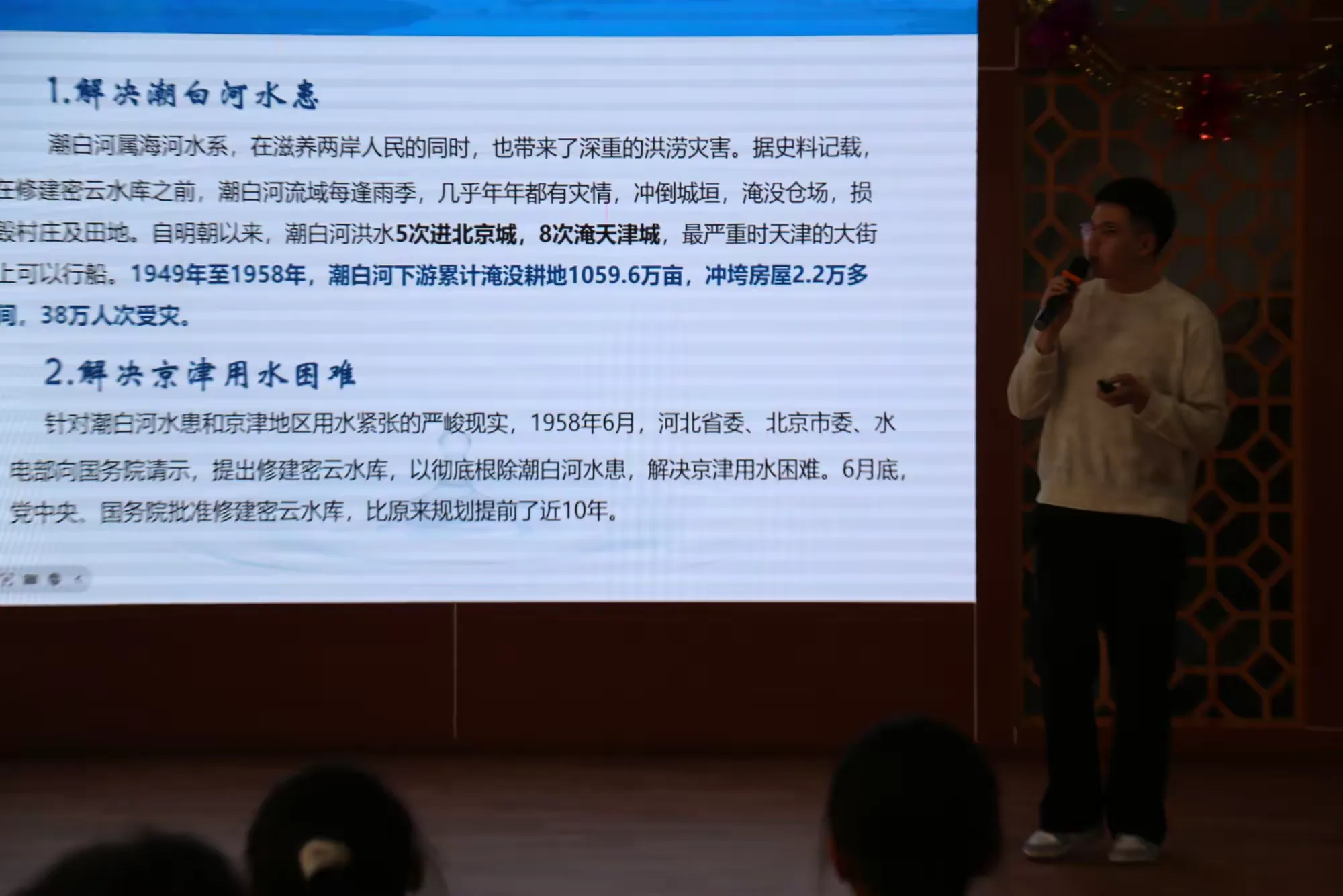 为引领全体师生深入了解水库建设的知识,继承水库建设者的精神品质,践行当代小学生的责任担当行为,2026年1月16日上午,北京市密云区不老屯镇中心小学邀请密云水库展览馆的讲解员贾宇航老师来校进行宣讲。