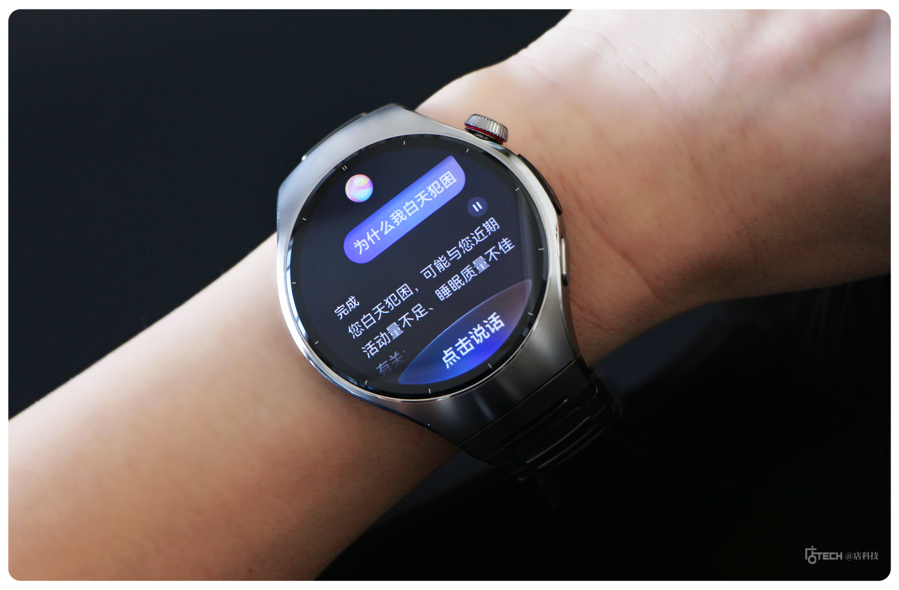 小艺也发挥了它的优势,还是以健康这个话题为例。当你问小艺:为什么我白天老犯困?它不仅能准确的理解你想要问什么,还能自动结合手表监测下来的近期运动及睡眠数据来分析模糊语句中「犯困」的原因,并且有针对性的给出相关改善建议,非常聪明。