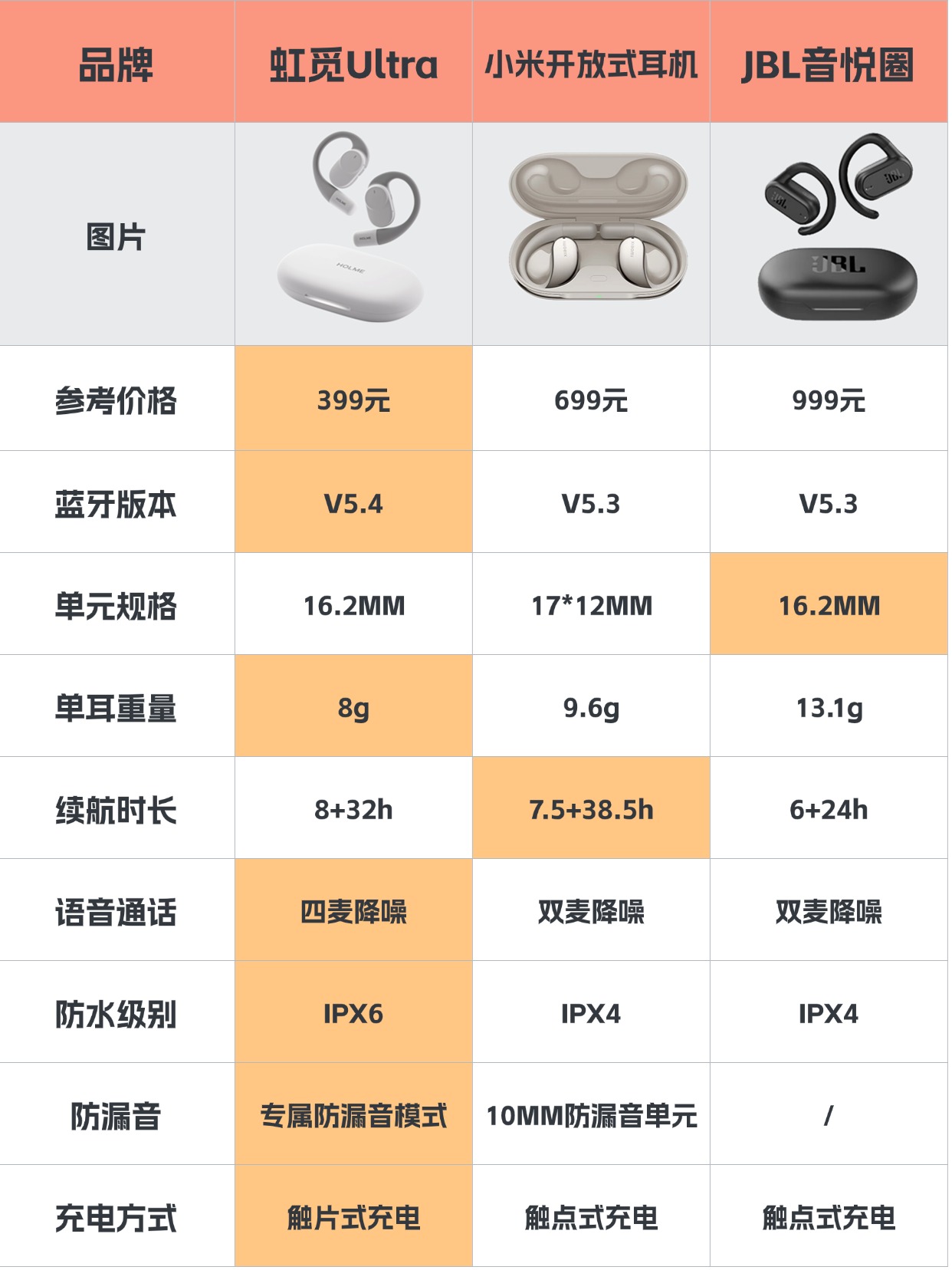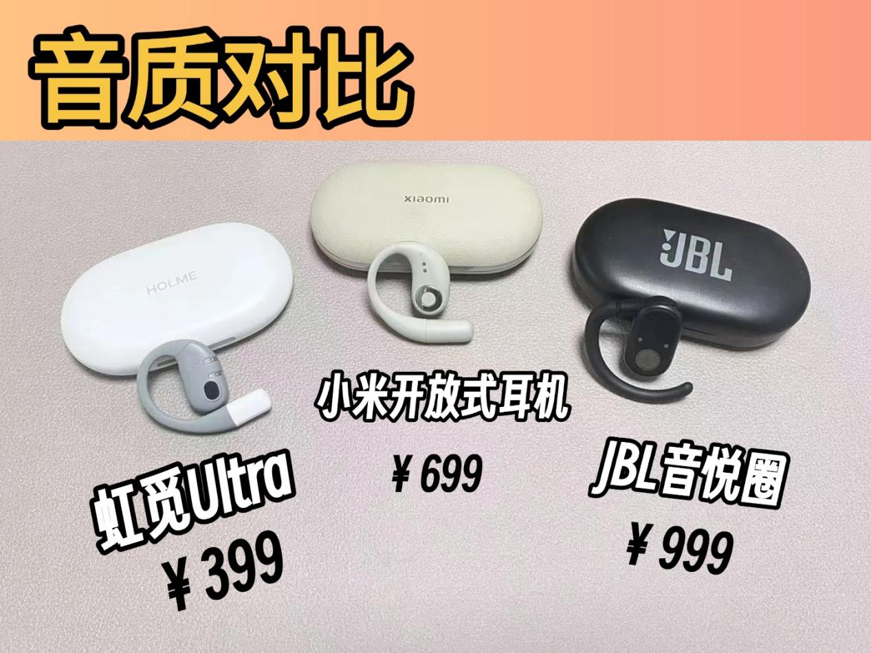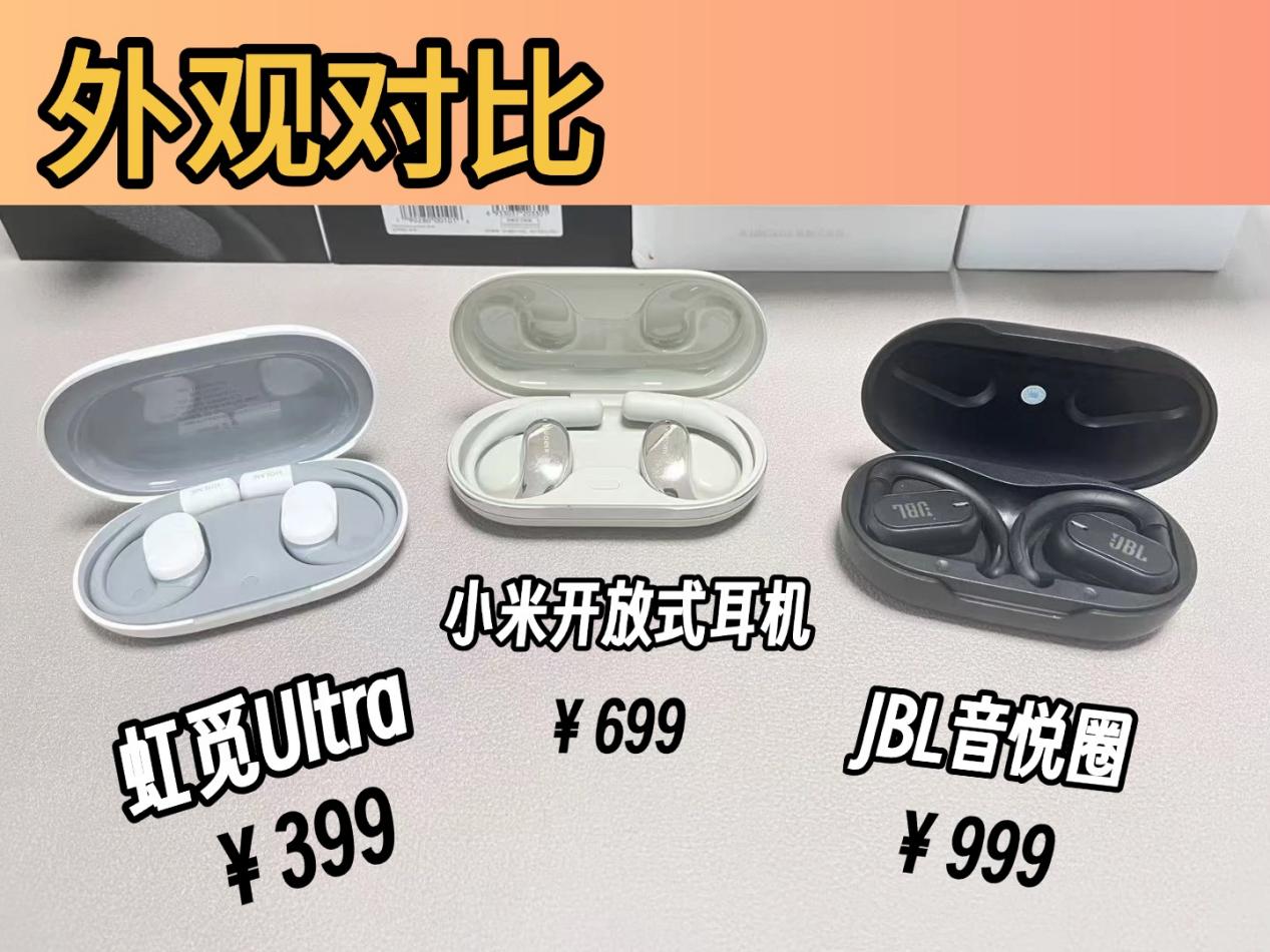 我之前试了十几款开放式耳机,最后挑出三款觉得真心不错的专门做个对比,帮大家选耳机少走点弯路。这三款分别是 399 块的虹觅 Ultra、699 块的小米开放式耳机,还有 999 块的 JBL 音悦圈。接下来我从性能、外观、戴着舒不舒服和音质这四个最关键的地方,跟大家好好唠唠它们的差别,争取帮大家找到最合心意的那一款。