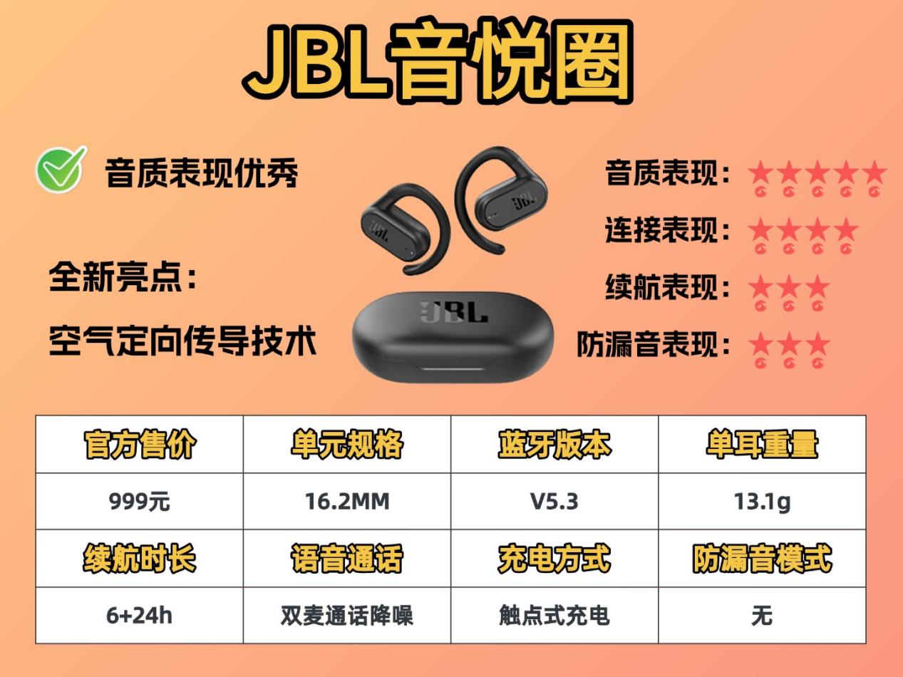 要是特别认 JBL 这个大品牌,觉得老牌子技术靠谱,对佩戴舒适度要求没那么高,那 JBL 音悦圈可以看看 —— 它音质不错,就是太重了,戴久了不舒服,适合追求品牌和音质、能接受舒适度一般的人。