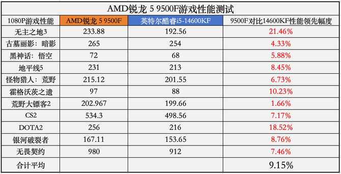 AMD锐龙 5 9500F首发评测:游戏性能同级领先 千元级超绝新星