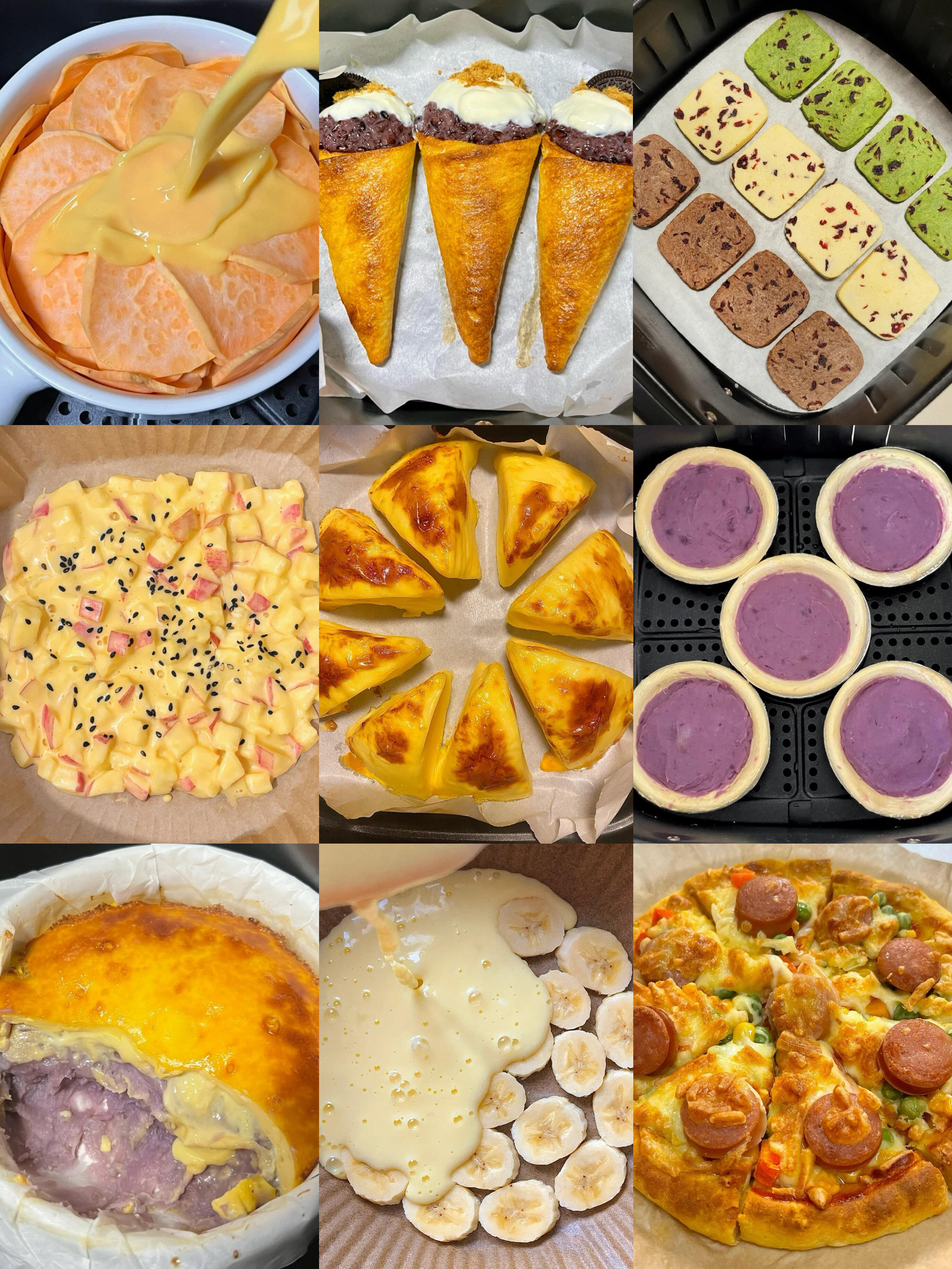 家有空气炸锅的注意啦!别再只会用它炸薯条、烤鸡翅啦。今天给大家解锁9款“空气炸锅专属甜品”,从软糯香甜的红薯烤蛋奶,到少女心爆棚的芋泥蛋挞,再到创意满分的馒头披萨,每一款都简单到“扔进炸锅等出锅”,零失败还低卡,吃完嘴巴甜甜,心里暖暖。