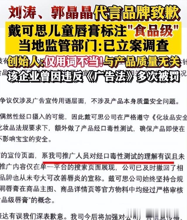 问题出在这一款儿童润唇膏的代言上。郭晶晶作为代言人,那张极具亲和力的脸印在海报上,本身就是一种强有力的保证。