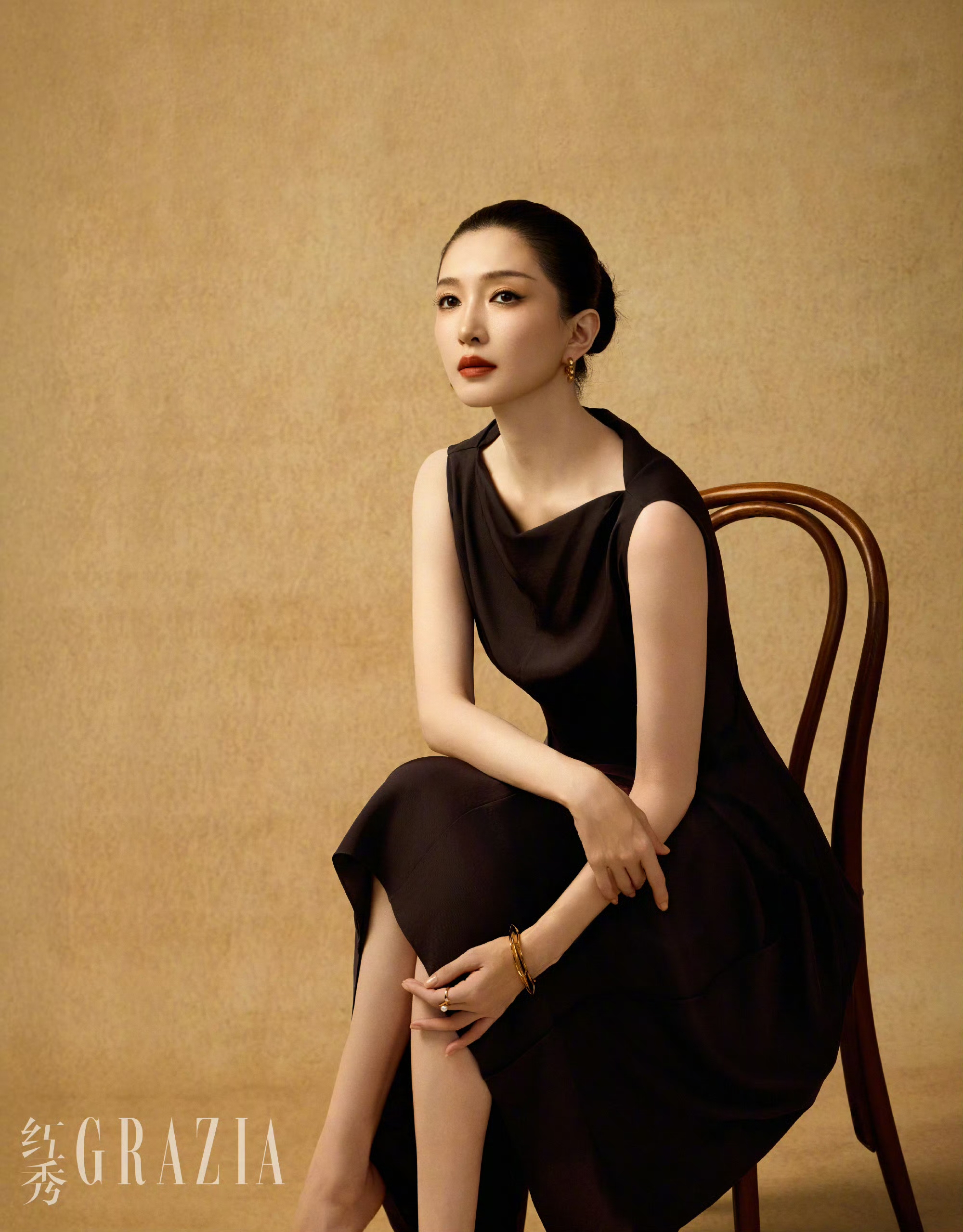 一身深棕无袖荡领裙尽显松弛氛围感。她慵懒坐于藤椅之上,暖调光影落在身上,多了几分温婉知性。随性的姿态与沉静的眼神,将岁月沉淀后的从容与优雅娓娓道来。