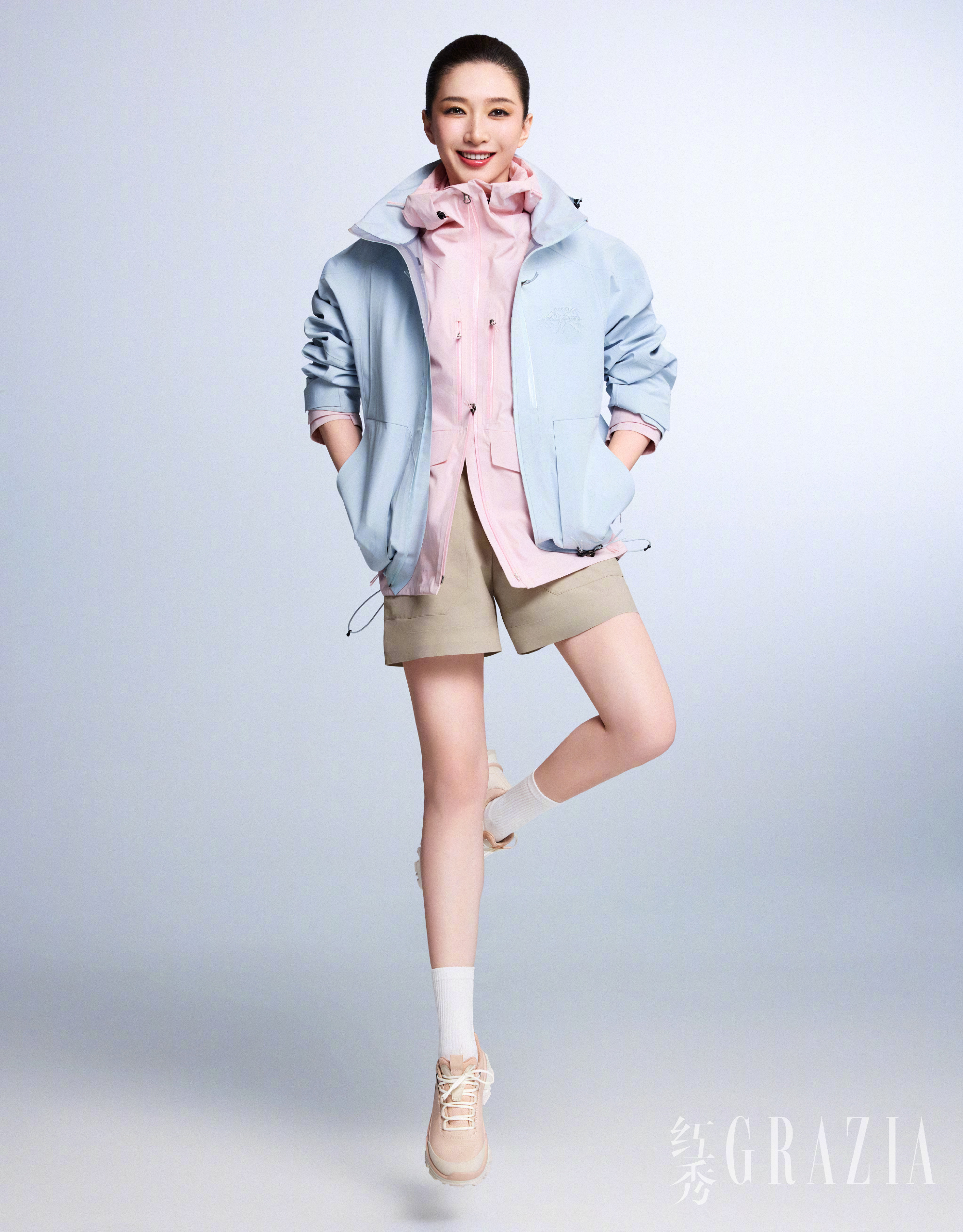 粉蓝拼色冲锋衣造型彻底打破风格局限。活力满满的户外穿搭,跳跃的色彩与灵动的姿态,让她秒变元气少女,运动风糅合着精致感,“风格不设限”的特质悄然流露,也直观展现出江疏影极强的造型驾驭力。