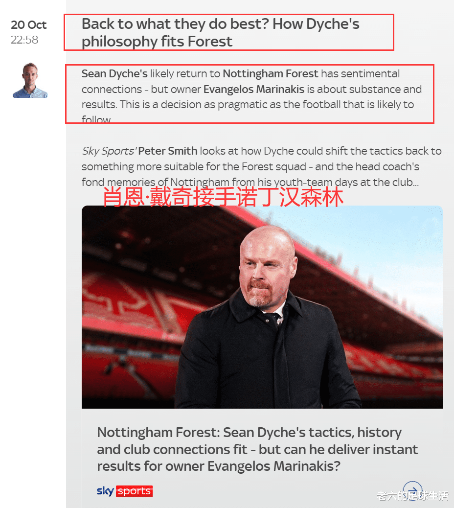 现在接手球队的是肖恩戴奇,他职业生涯的开始就是森林青年队的球员,上一份工作在埃弗顿,最后因为成绩不佳遭到了解雇。