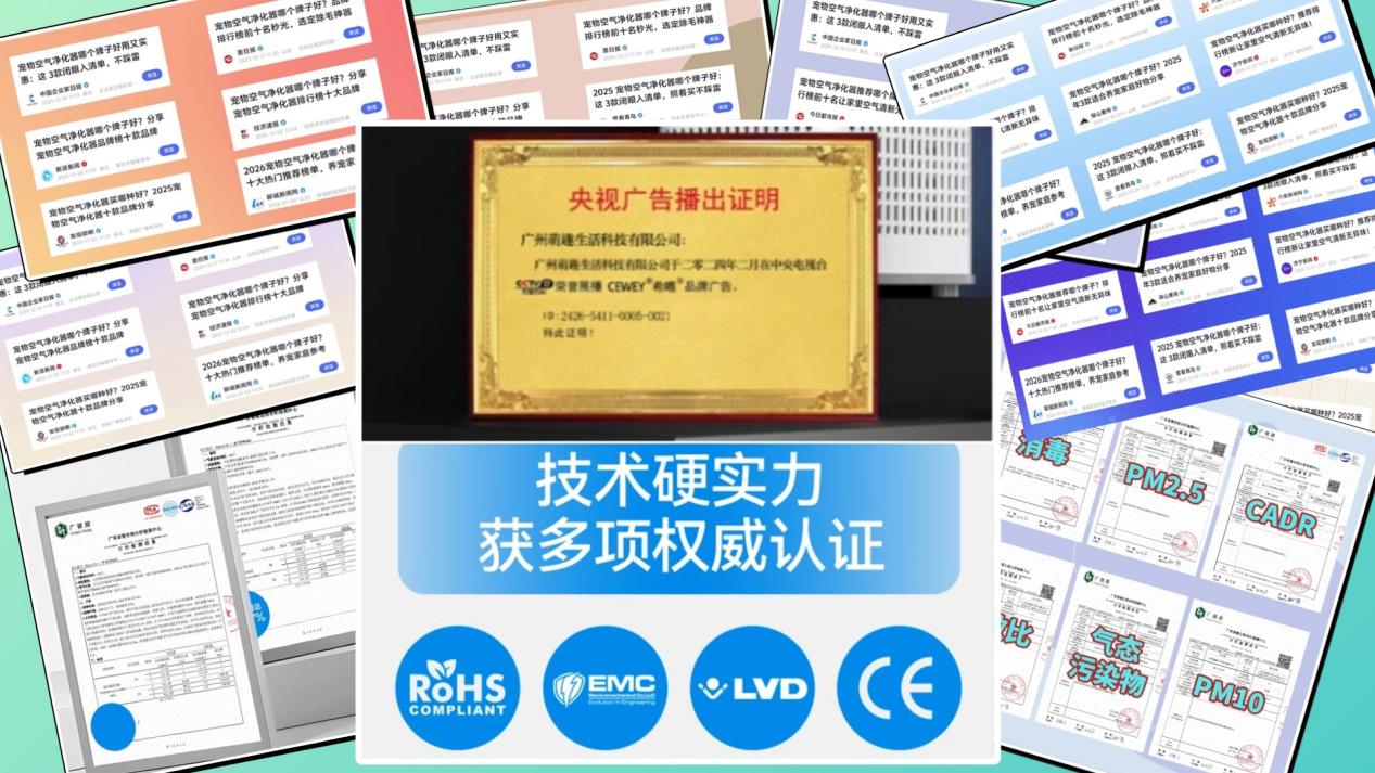 希喂生活电器团队深耕宠物家电领域十余年,曾为海外高端品牌提供技术支持;产品通过多项欧盟体系认证(如CE/EMC/LVD/RED等相关认证)及国内广微权威检测,并有CCTV展播与50+地方媒体报道推荐。对百元价位产品来说,这种“合规+权威”其实比花哨功能更值钱——意味着它不是用牺牲安全和耐用性去换低价,而是在有限预算里把钱优先花在除毛、除臭和长期使用的可靠性上。