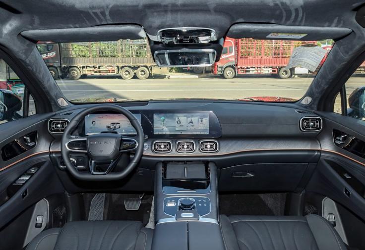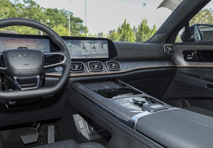 接下来转向车内部分,新款瑞虎9并没有对内饰风格进行明显调整,环抱式座舱布局看起来时尚大方,符合主流审美需求。主驾驶前方配置24.6英寸双联屏设计,辅以50英寸AR-HUD抬头显示系统来看,主体满足了年轻家庭用户对科技感、舒适度的座舱硬件需求。而在细节层面,整体还使用了当下常见的下沉式储物空间,保留了辨识度良好的“回字形”空调出风口设计。同时前排还配备了主驾驶按摩以及零重力女王副驾,高配车型还提供SONY 14扬声器环绕音响、256色光瀑音律氛围灯、C-PURE奇瑞净立方绿色座舱+高档智能香氛系统等配置,进一步提升了座舱的舒适感。