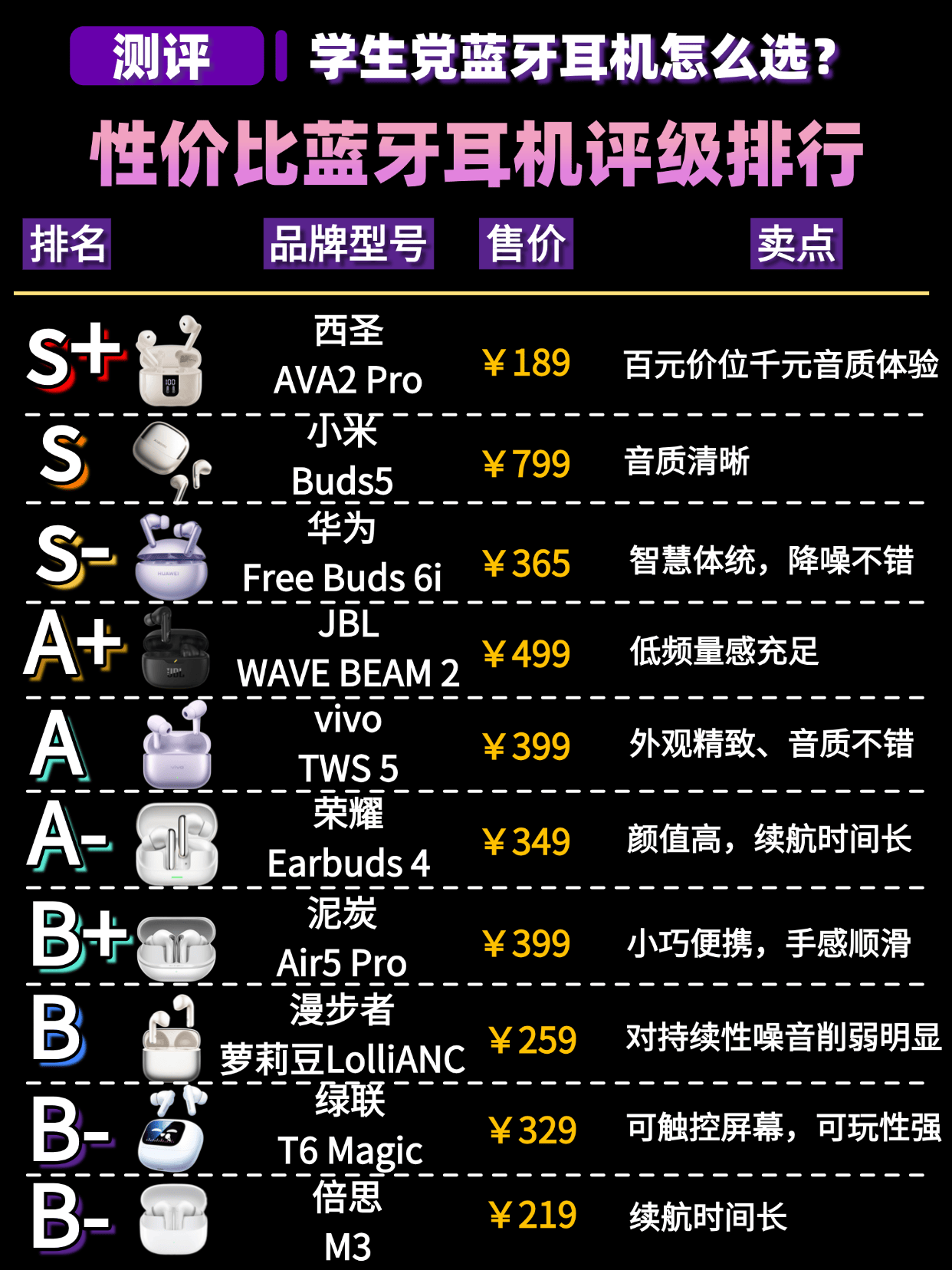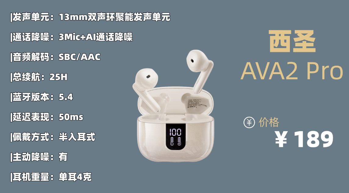 综合趋势主流品牌品牌1:西圣AVA2 Pro蓝牙耳机