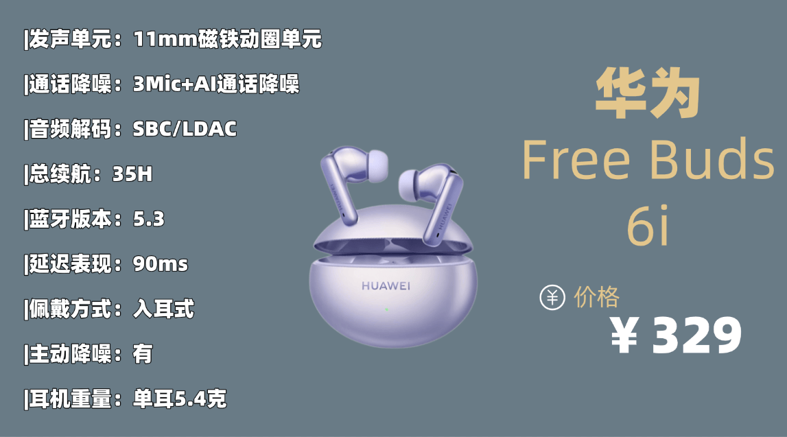 综合趋势主流品牌品牌2:华 为F ree Buds 6i蓝牙耳机