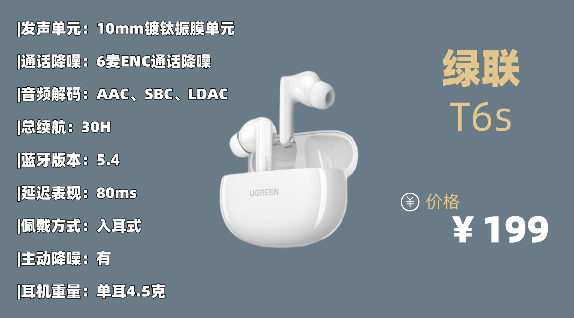 综合趋势主流品牌品牌7:绿 联T 6s蓝牙耳机