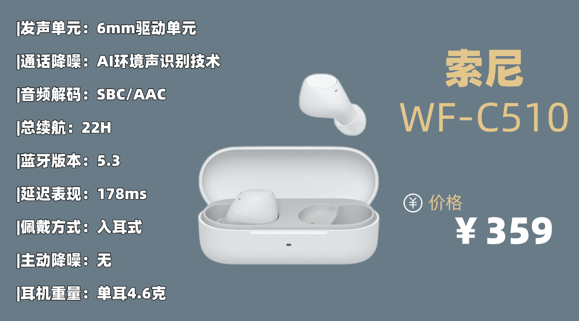 综合趋势主流品牌品牌6:索 尼WF-C510蓝牙耳机