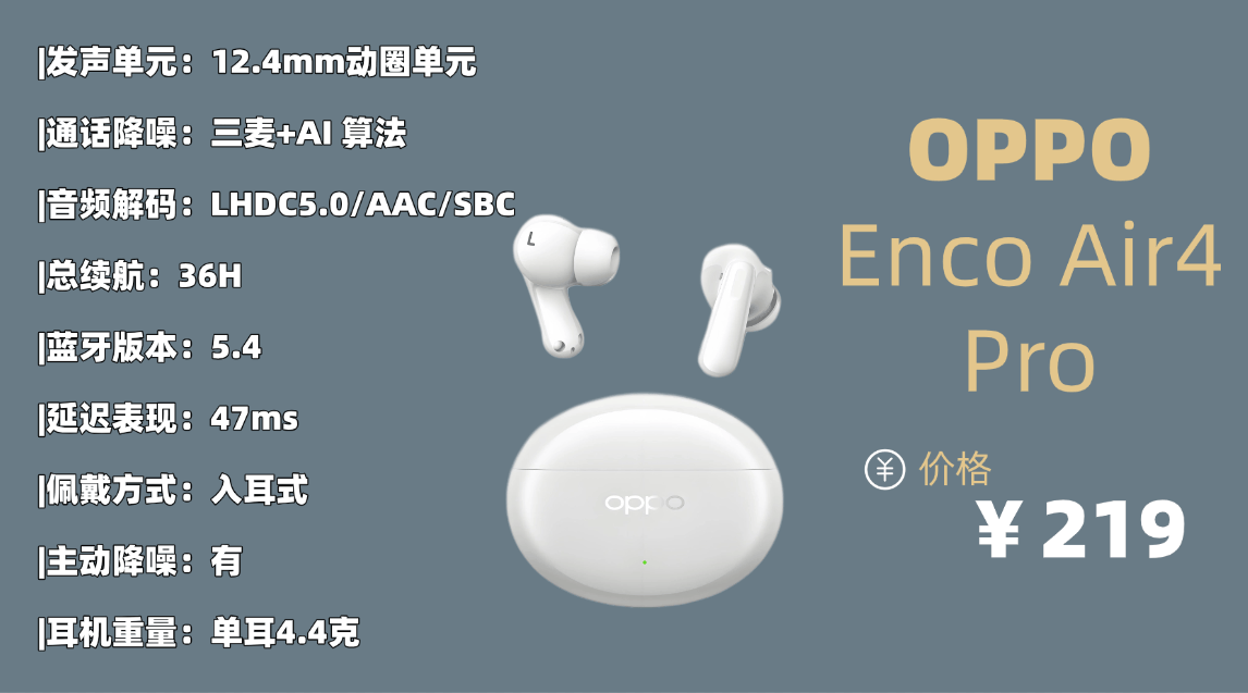 综合趋势主流品牌品牌8:O PPO E nco Air4 Pro蓝牙耳机